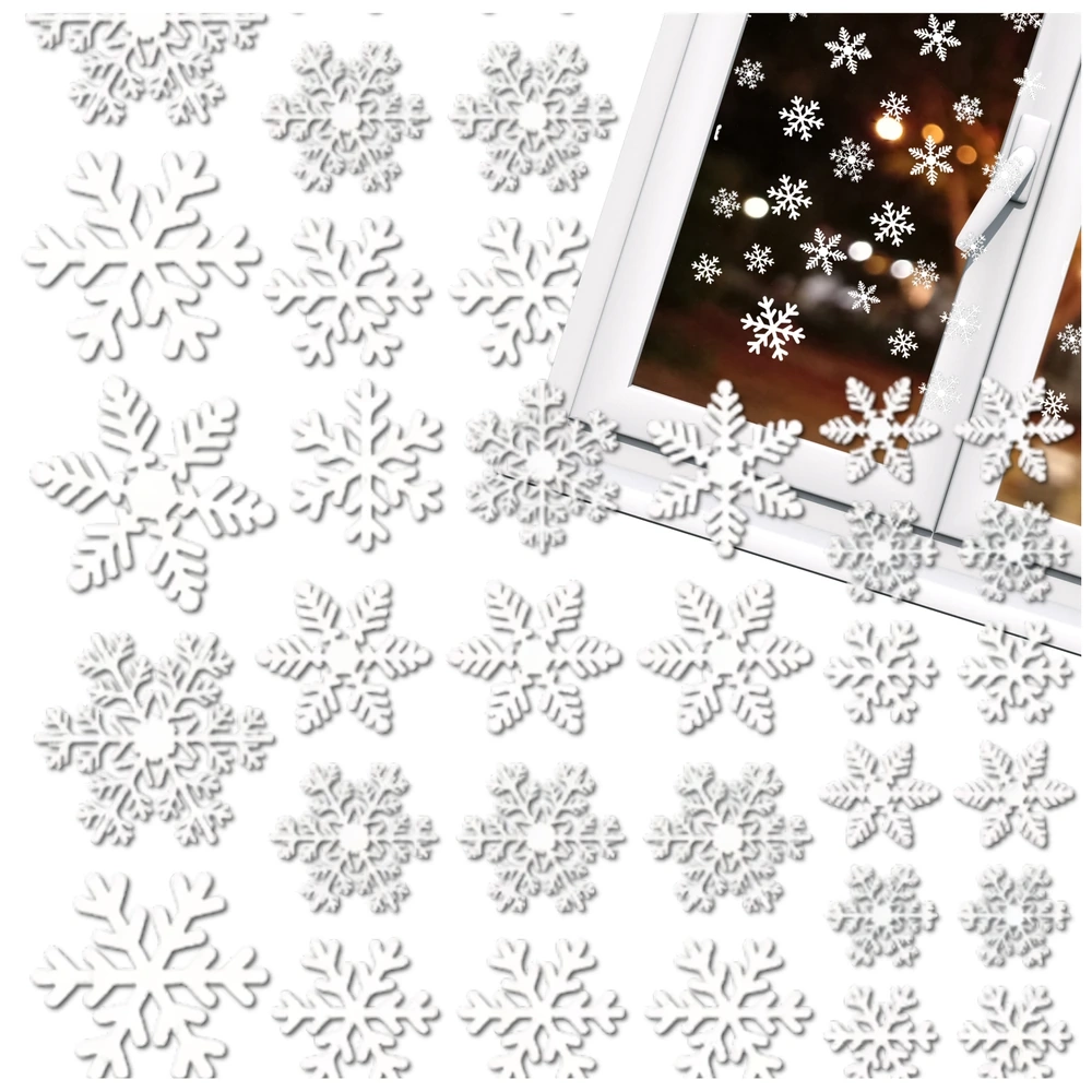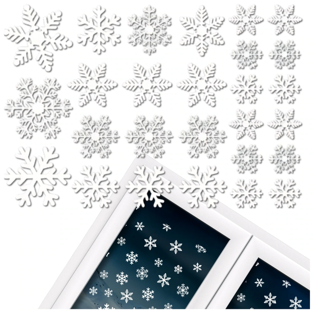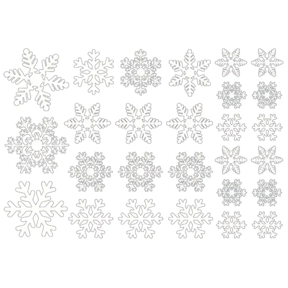 Foaie de autocolante pentru ferestre de Crăciun cu fulgi de nea, 27 buc