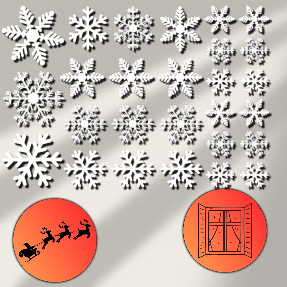 Autocolantele de înaltă calitate sunt ușor de lipit și îndepărtat, ceea ce vă permite să decorați rapid și în mod convenabil, fără griji cu privire la urmele de la suprafață. Varietatea modelelor de fulgi de zăpadă înseamnă că puteți crea compoziții unice care vor arăta frumos atât în timpul zilei, cât și după întuneric.