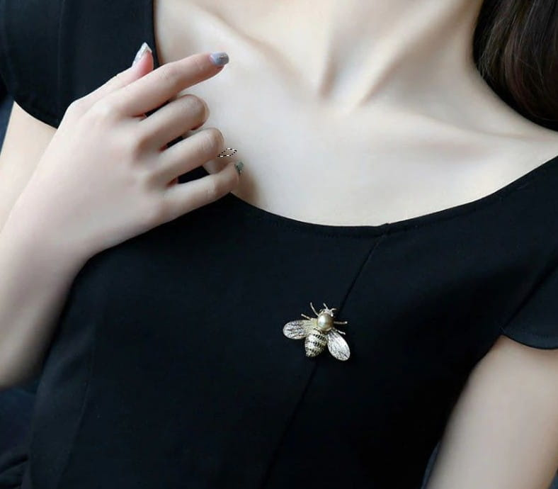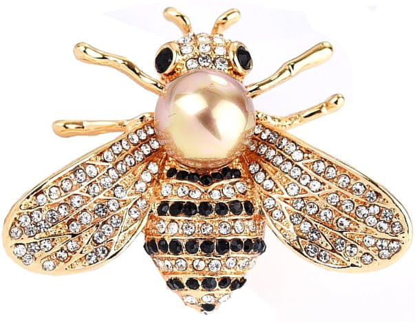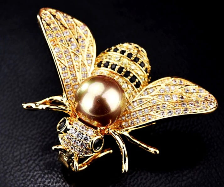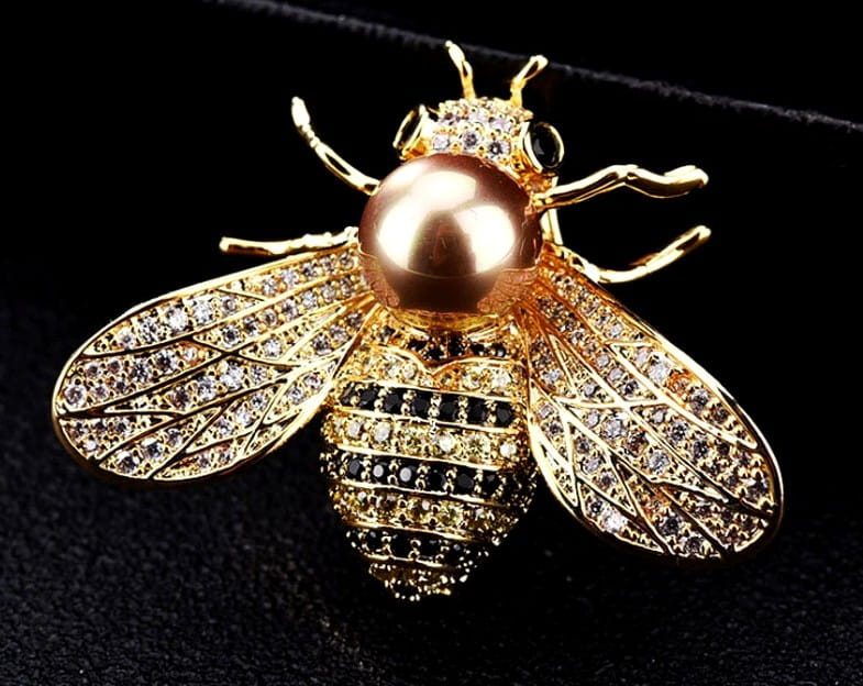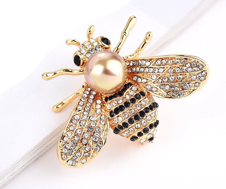 Broșă elegantă pentru albine , decorată cu zirconii și perle