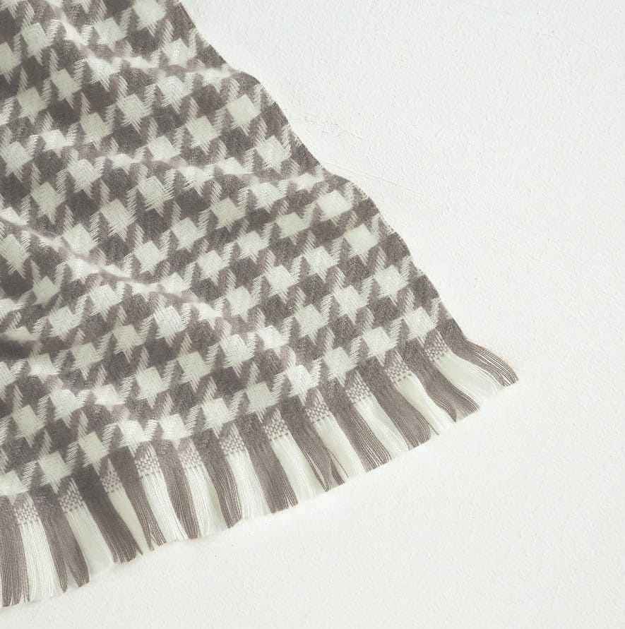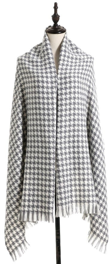 Recomandat de magazinul nostru online, un produs remarcabil, care este o eșarfă șal mare și caldă este decorată cu un șah original gri și alb.