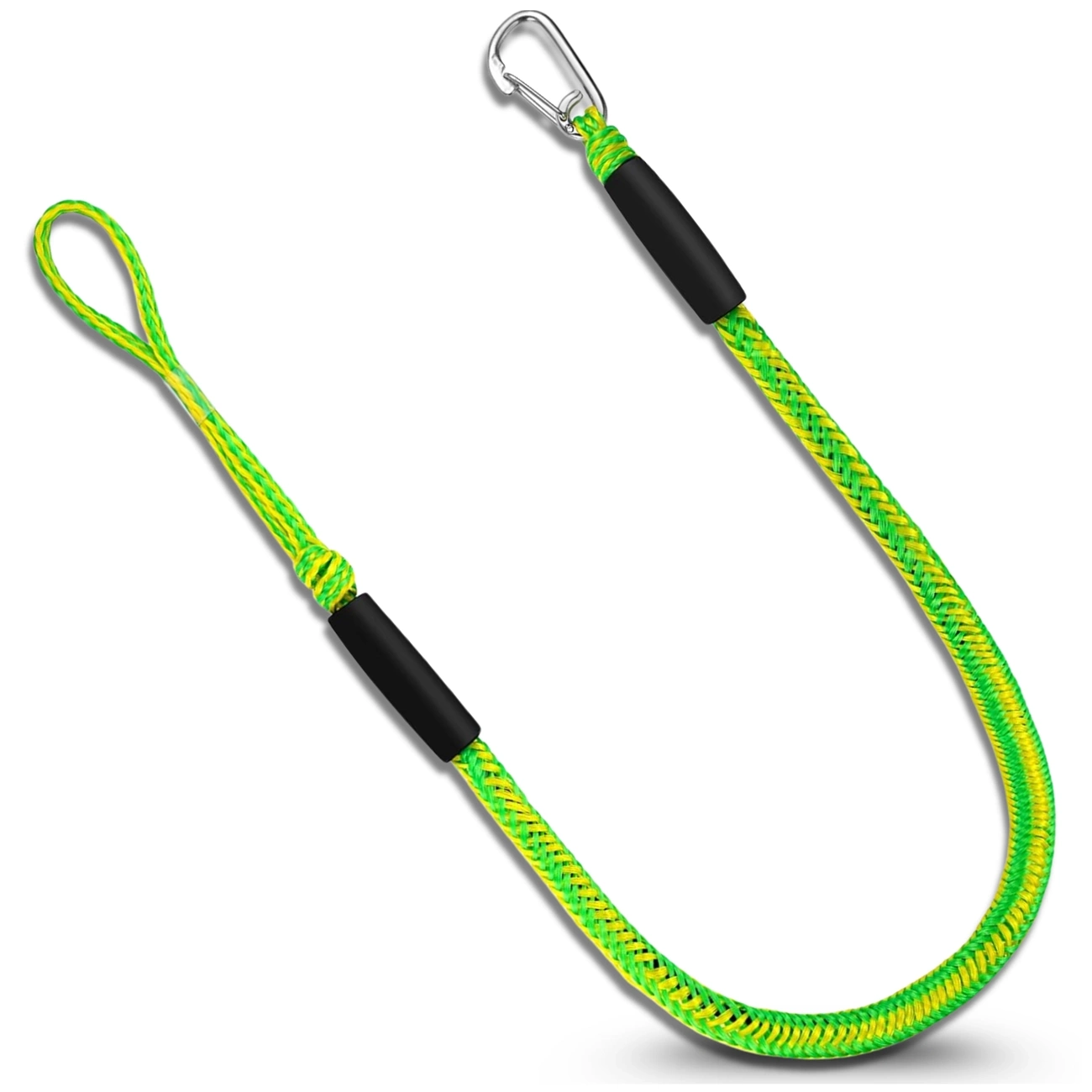 Coarda se termină la un capăt cu o carabină puternică din oțel din oțel inoxidabil 304 rezistent la apă sărată, iar pe celălalt cu o buclă durabilă pentru o atașare rapidă. Manșoanele de protecție suplimentare protejează împotriva abraziunii în zonele cu stres ridicat, în timp ce plutitoarele din spumă împiedică scufundarea funiei și o fac ușor de găsit.