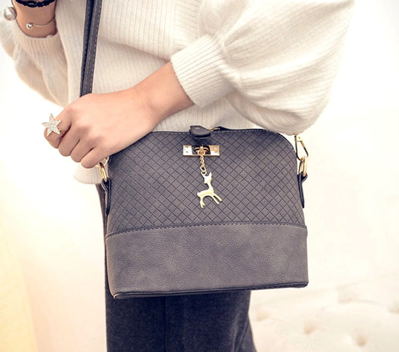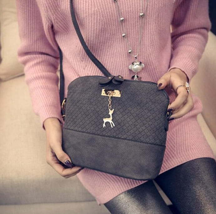 Această geantă de mână matlasată cu un breloc în formă de ren va fi utilă nu doar în preajma Crăciunului. O puteți purta literalmente pe tot parcursul anului - este elegantă, iar renul auriu îi sporește farmecul unic. Nu este prea mare, dar totuși încăpătoare - perfectă pentru o plimbare, o întâlnire sau o întâlnire cu prietenii. Are loc pentru lucruri esențiale mici, precum portofelul, documentele sau telefonul. Are un compartiment mare, fără separatoare. Cu fermoar convenabil, cu o bază căptușită. Disponibil în multe culori. Cea mai versatilă este, desigur, negrul - merge cu orice și arată grozav indiferent de stilul ales. Versiunea gri este, de asemenea, ideală pentru uzura zilnică, în timp ce pentru cei care preferă culori mai intense, o recomandăm pe cea roșie. Este o culoare foarte profundă, expresivă, pe care o poți asorta ușor cu rujul tău, de exemplu. De asemenea, oferim versiuni pastelate pentru vară - genți în roz mentă și roz pudră - aceste nuanțe nu se demodează niciodată! Dacă sunteți în căutarea unei genți de poștaș solid realizată la un preț bun - aceasta va fi cea mai bună alegere și totodată accesibilă.