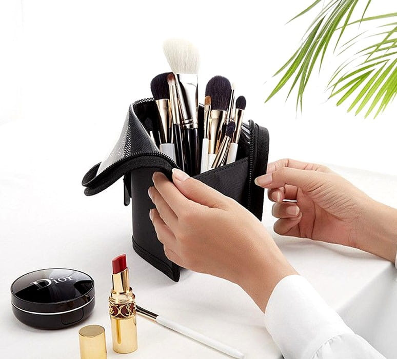 Organizatorul funcțional de pensule de machiaj este un accesoriu esențial, dedicat femeilor care se machiază. Este un produs funcțional cu o înălțime de 25 cm și o lățime de 13 cm. Este o soluție excelentă pentru a vă păstra pensulele protejate corespunzător, prevenind în același timp deformarea periilor acestora. Geanta de machiajrecomandată pentru accesoriile de machiaj estecu fermoar. Este un produs realizat din plastic negru.