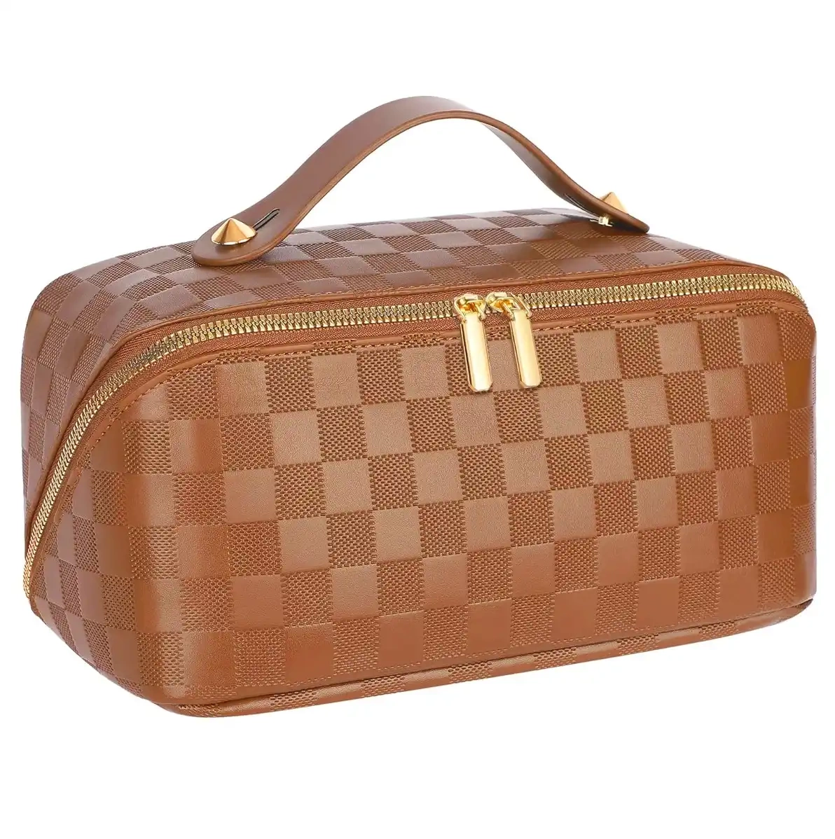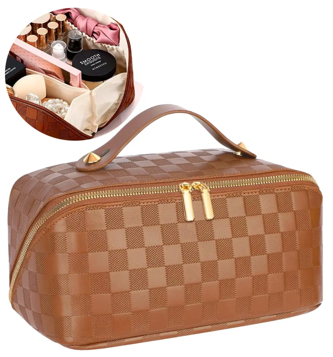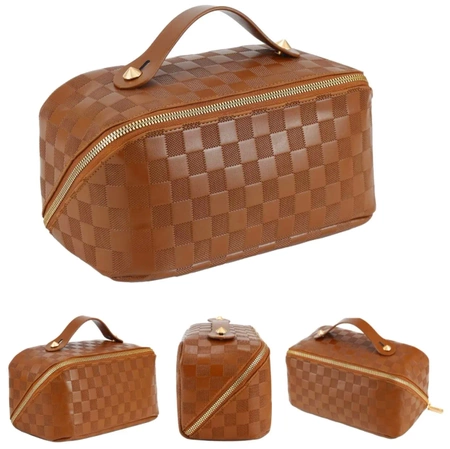 Geantă cosmetică maro elegantă organizator din piele ecologică - un produs practic.