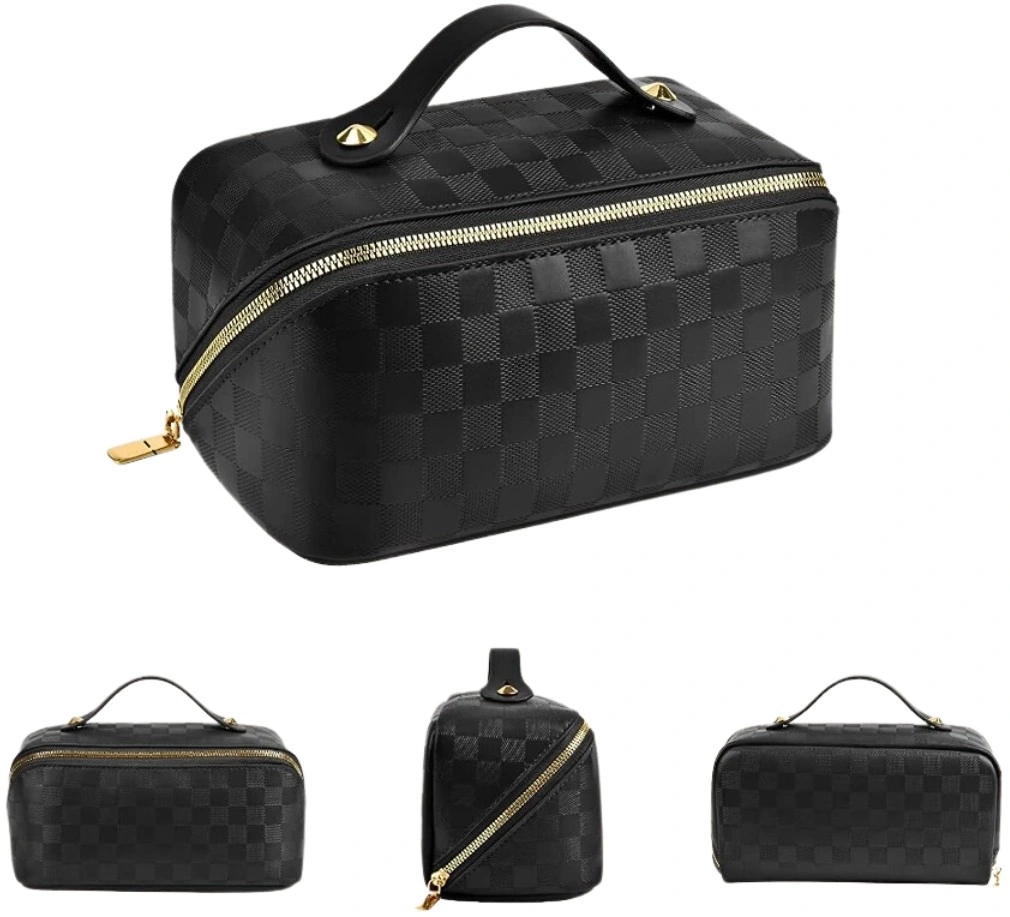 Dorim să vă prezentăm un produs foarte atractiv din oferta noastră, care este o geantă cosmetică neagră organizator elegant din piele ecologică. Acesta este un produs unic, care nu numai că vă poate servi pentru a vă depozita cosmeticele, dar poate fi și un accesoriu elegant pentru garderoba dumneavoastră.