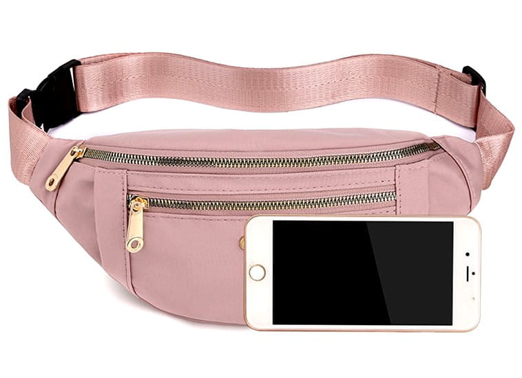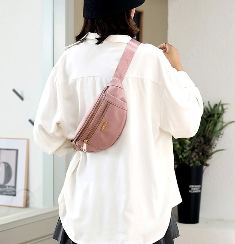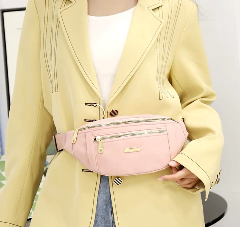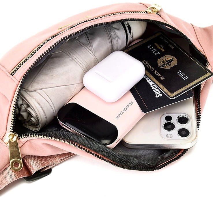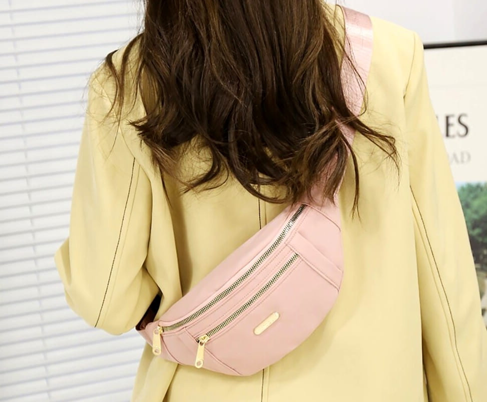 Servietă, husă, geantă de talie din material sintetic plăcut la atingere, impermeabilă, pentru femei.