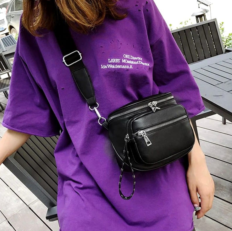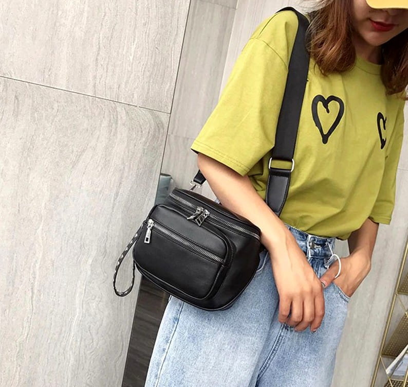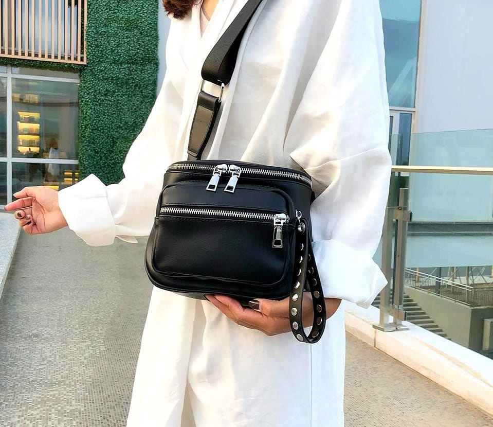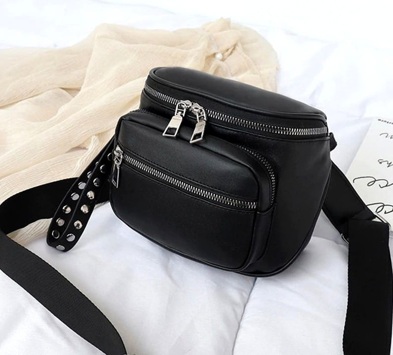 Această geantă neagră, foarte drăguță, cu crampoane arată modern, trendy și elegant. Este un accesoriu excelent pentru multe stiluri. Punga recomandată merge perfect cu pantaloni și cu o rochie. Geanta poștală este impermeabilă și va funcționa bine în zilele ploioase. Această geantă de mână din piele pentru femei va atrage cu siguranță atenția oricărei femei.