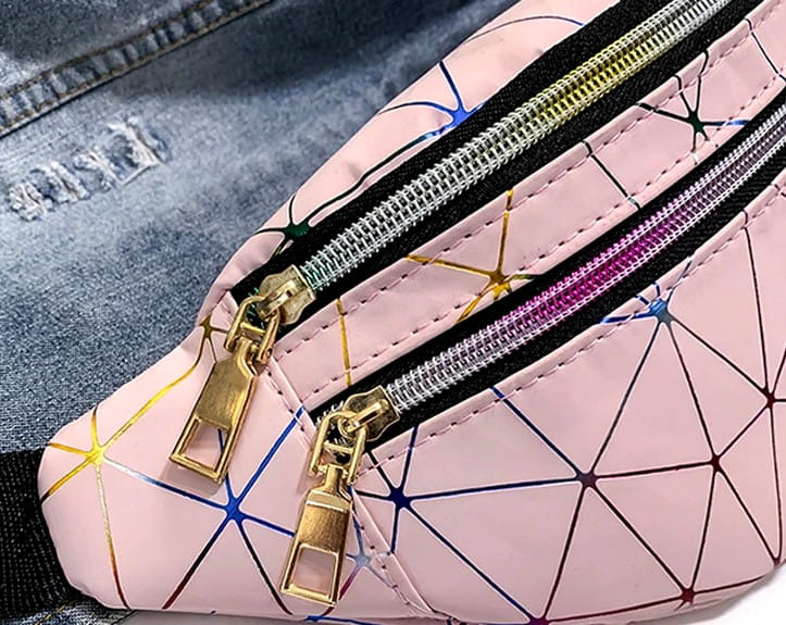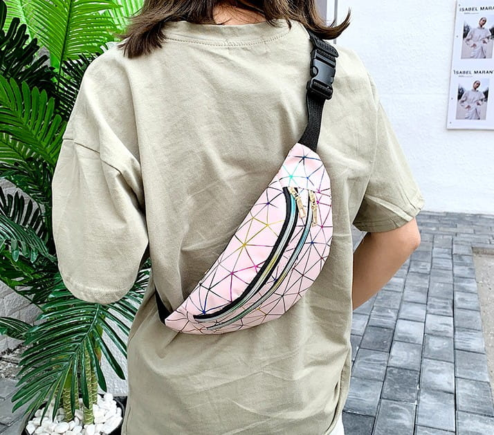Geanta poate fi purtată pe talie, șold sau spate și ține toate
