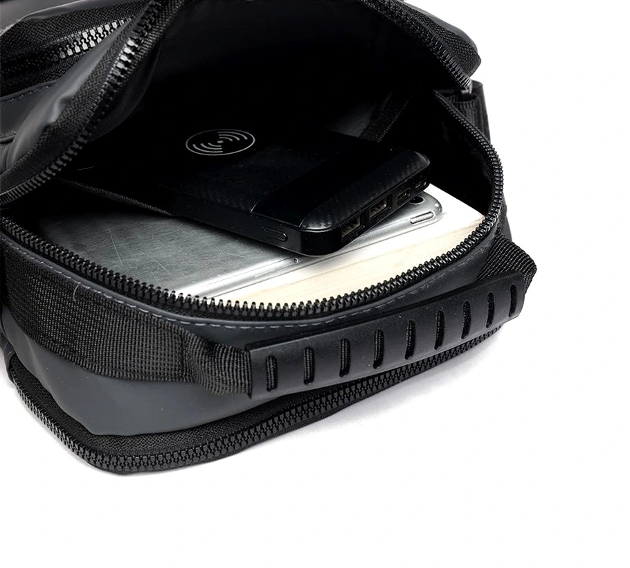 Este complet neagră, cu un finisaj mat, care este evidențiat și mai mult de singurele elemente lucioase, sub forma mânerelor cu fermoar. Acest lucru îl face un accesoriu pe care îl puteți purta cu orice ținută, în special sport și casual, dar nu numai. Numeroasele buzunare și compartimente vor menține ordonat interiorul acestui produs.