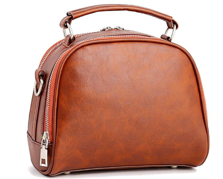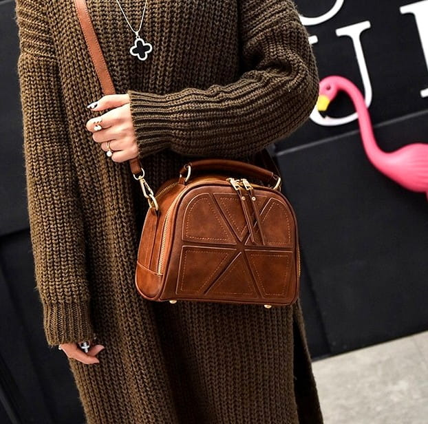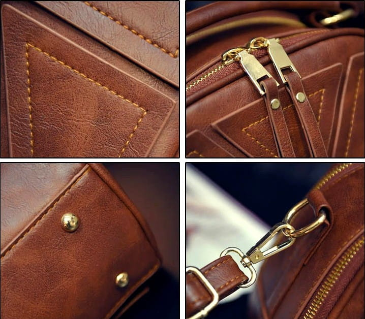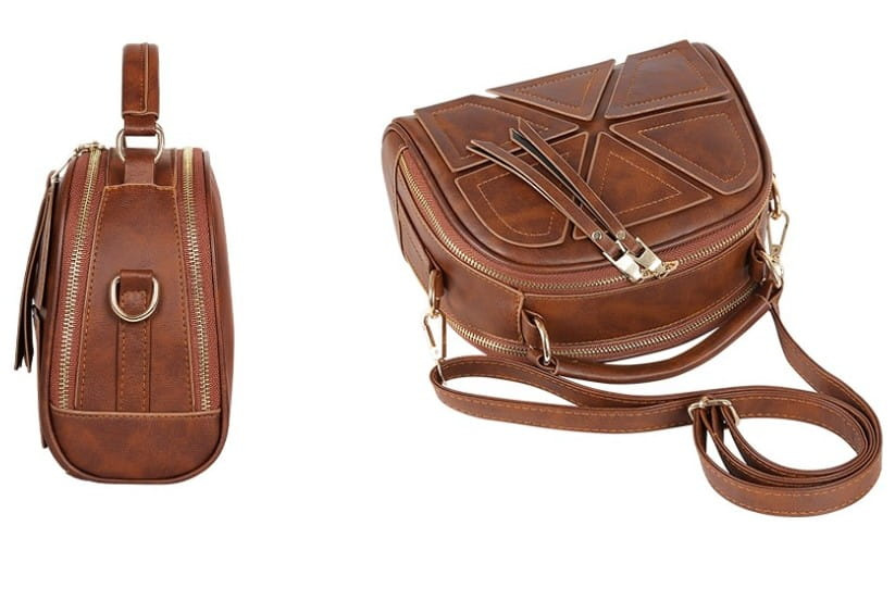 Geanta poate fi purtată de mâner sau pe umăr, are o curea cu reglare a lungimii