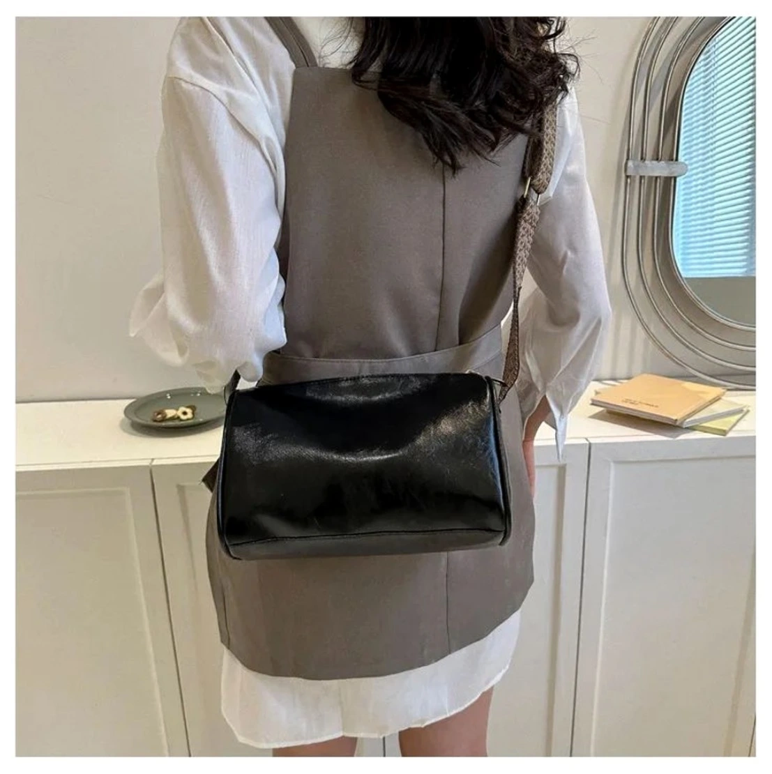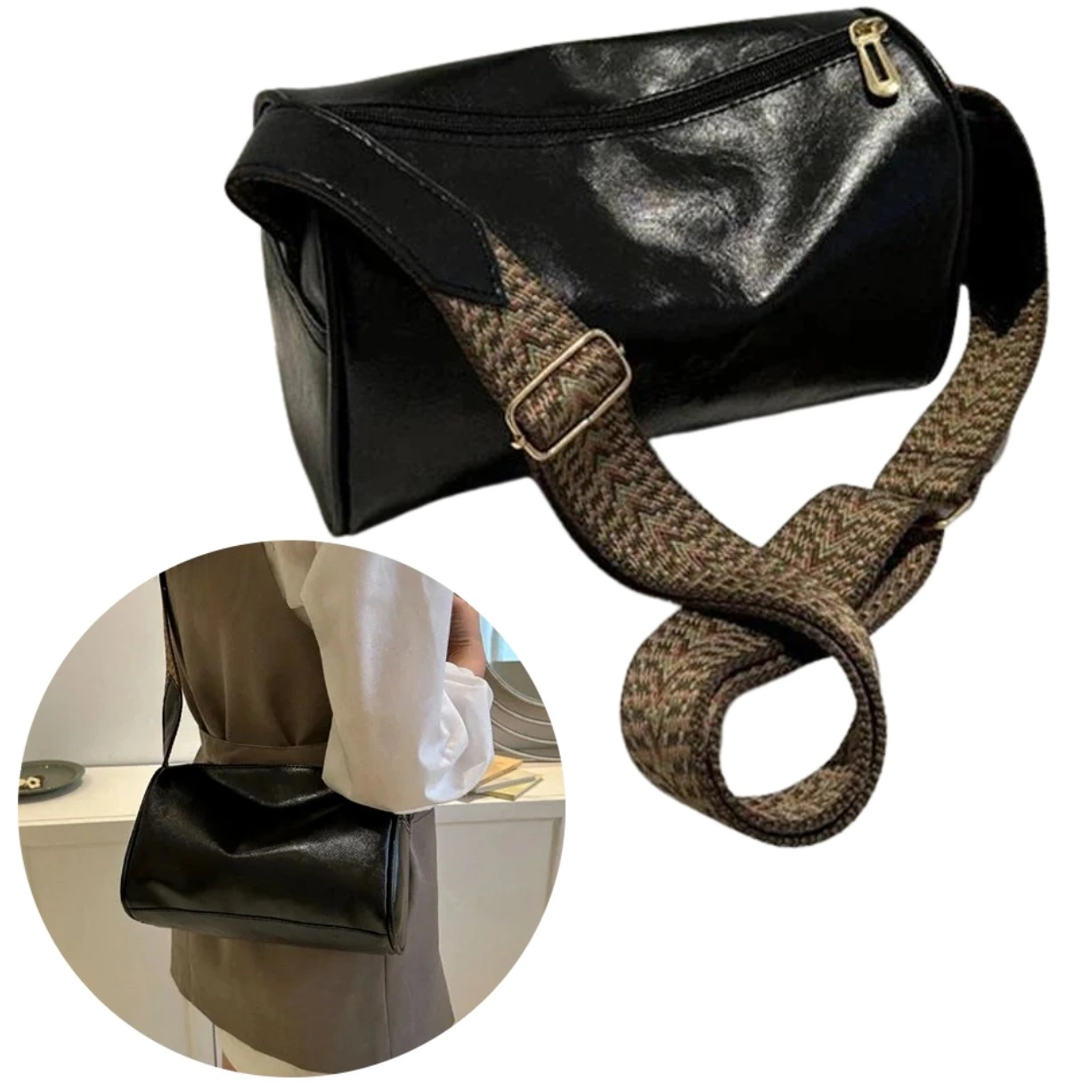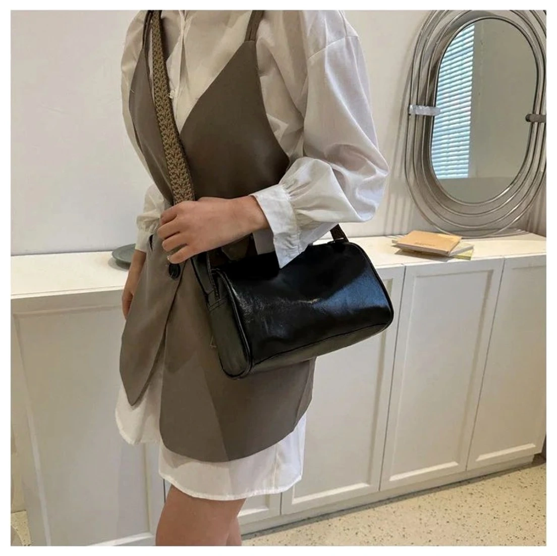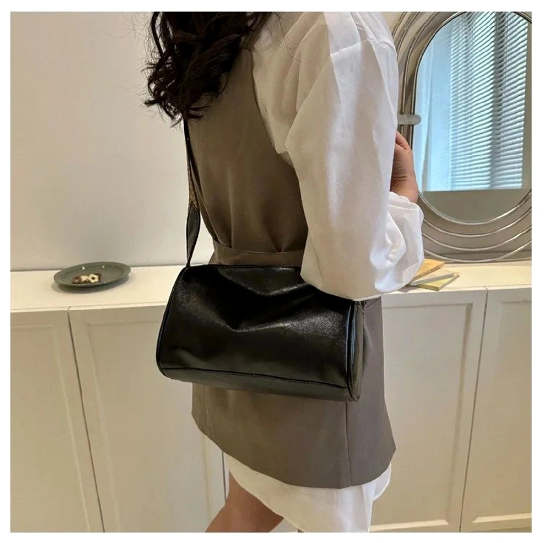 Geantă de umăr de damă, vintage, lată, din piele ecologică, încăpătoare
