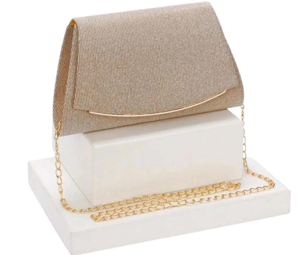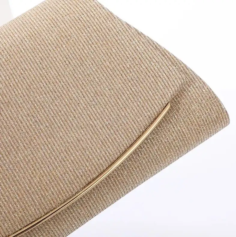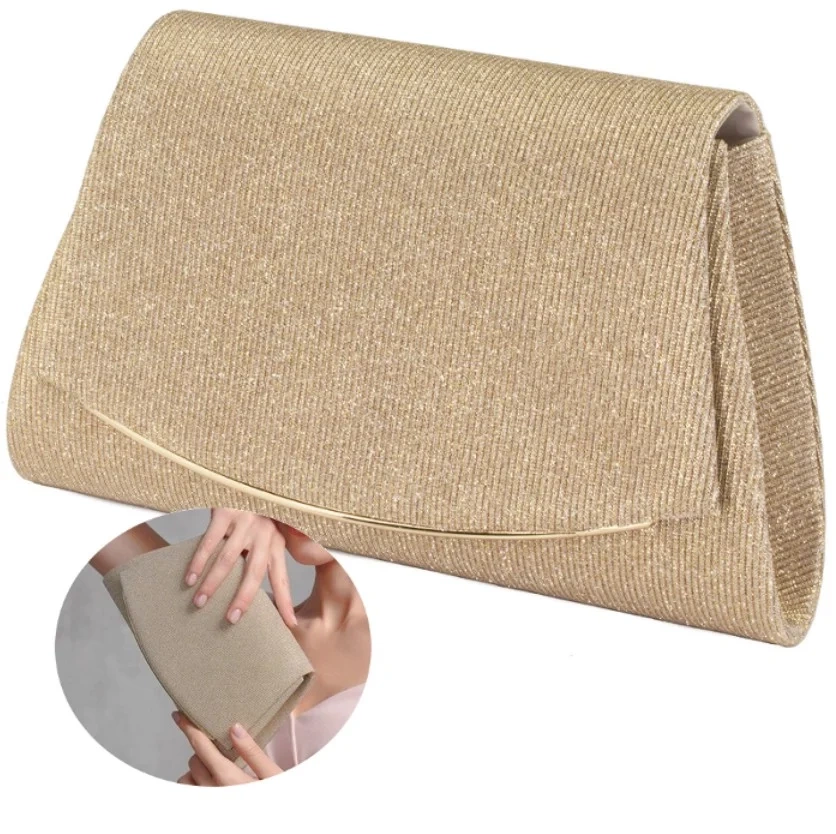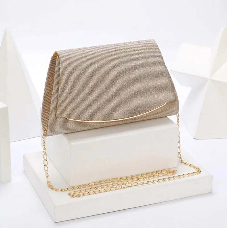 Geanta de umăr aurie de seară pentru femei este fabricată din țesătură durabilă, sintetică, cu nervuri, decorată cu brocart strălucitor. Pereții laterali ai produsului oferit de magazinul nostru online, sunt ușor rigidizați, astfel încât toate articolele din interior nu vor fi strivite accidental.