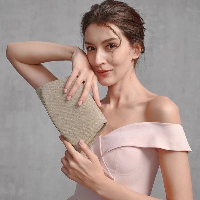 Produsul este practic de transportat. Este confortabil de ținut în mână. De asemenea, poate fi agățat pe umăr, pe un lanț de culoare aurie.