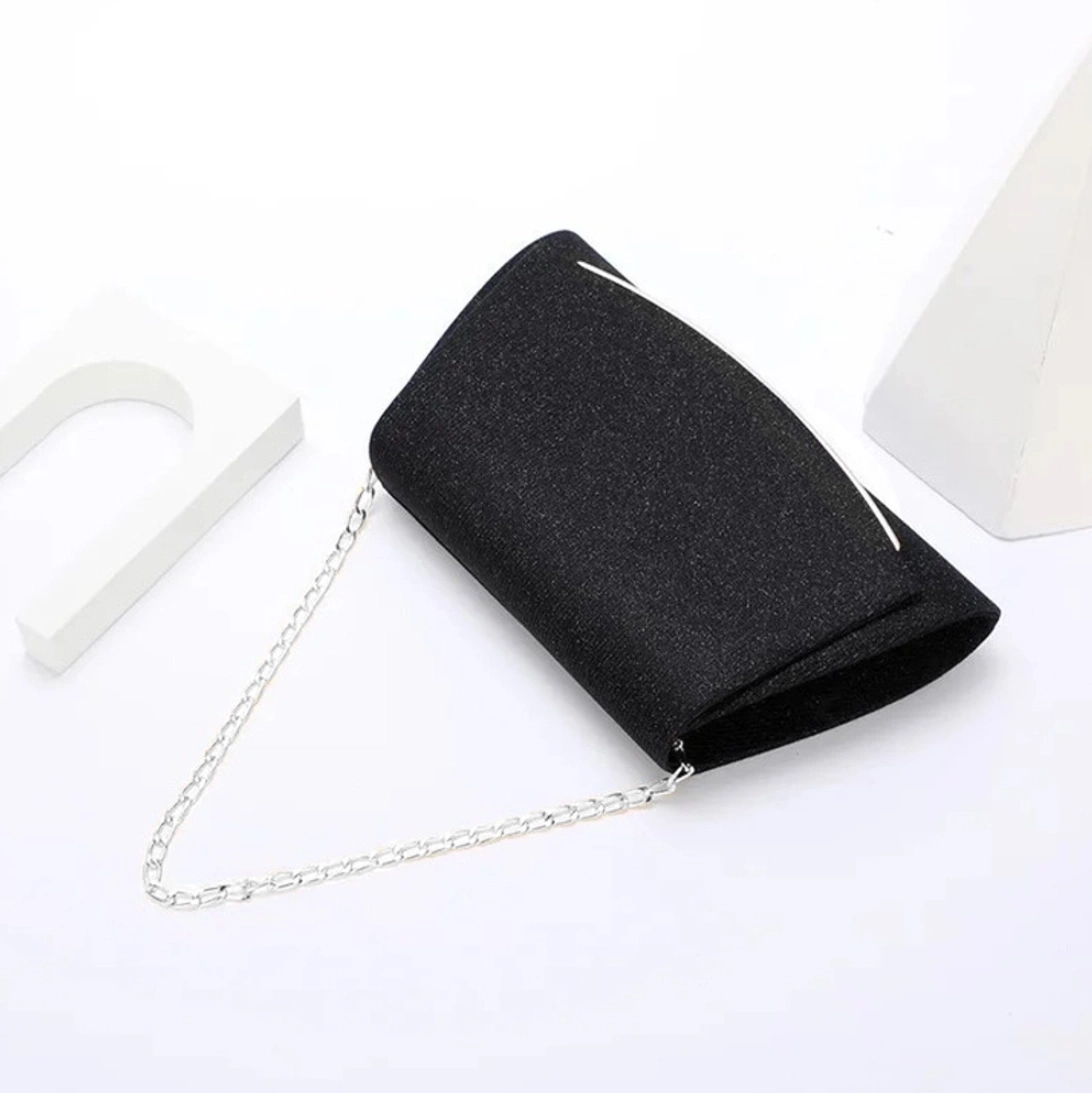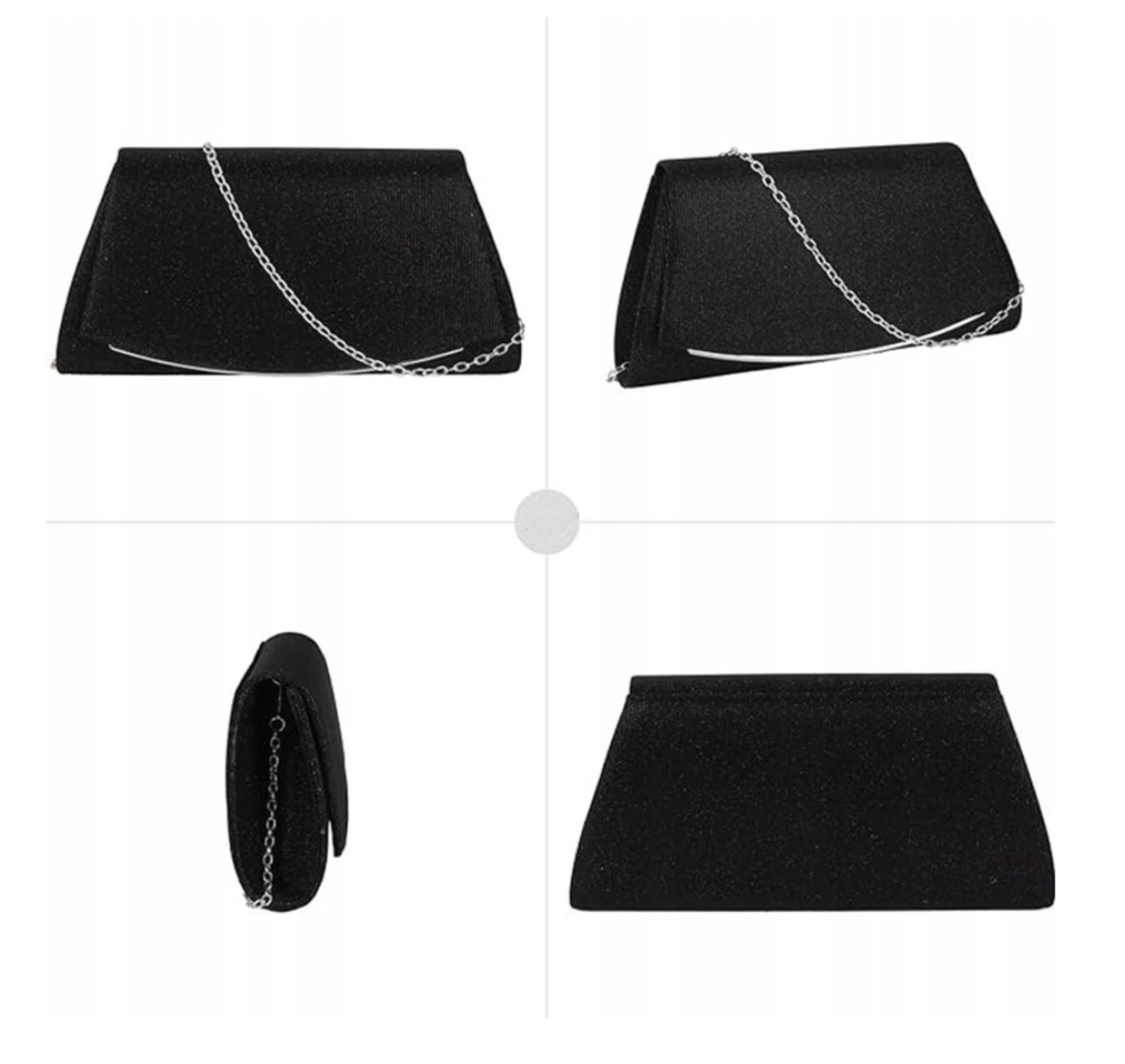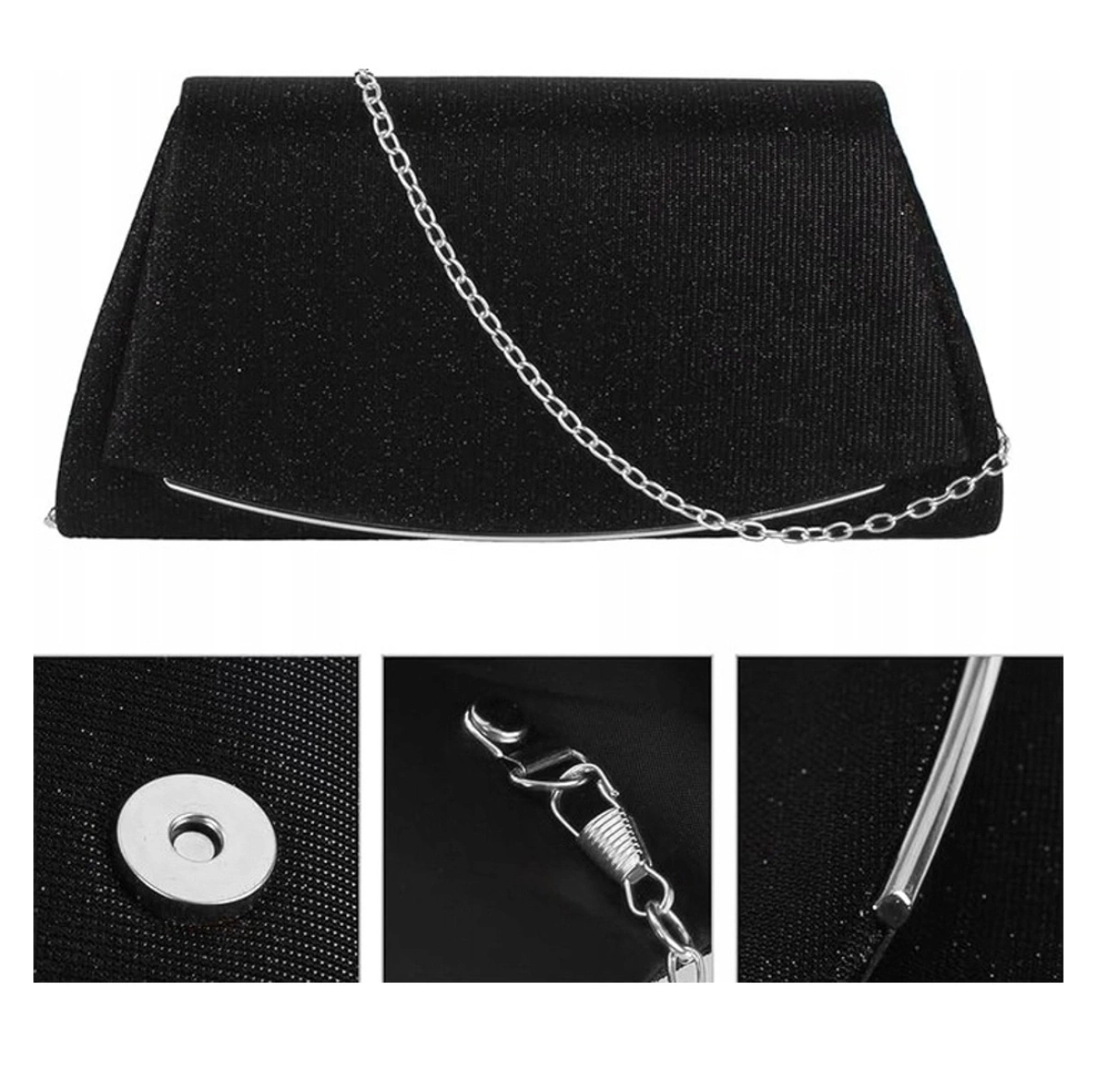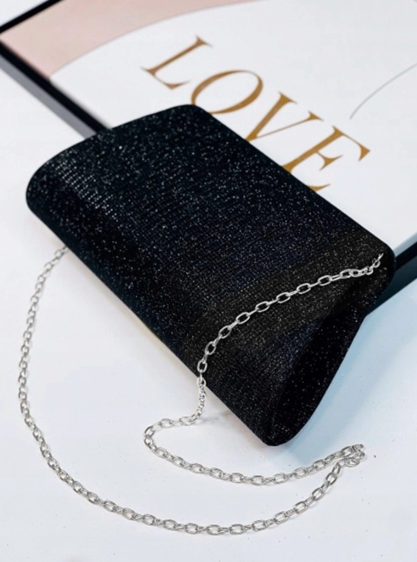 Clapeta superioară este decorată cu o curea metalică strălucitoare, atașată de partea sa inferioară. Geanta de seară de umăr cu sclipici este ușor căptușită, ceea ce o face confortabil de ținut, iar articolele transportate în interior sunt bine protejate împotriva deteriorărilor accidentale.