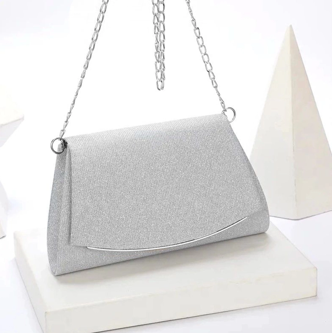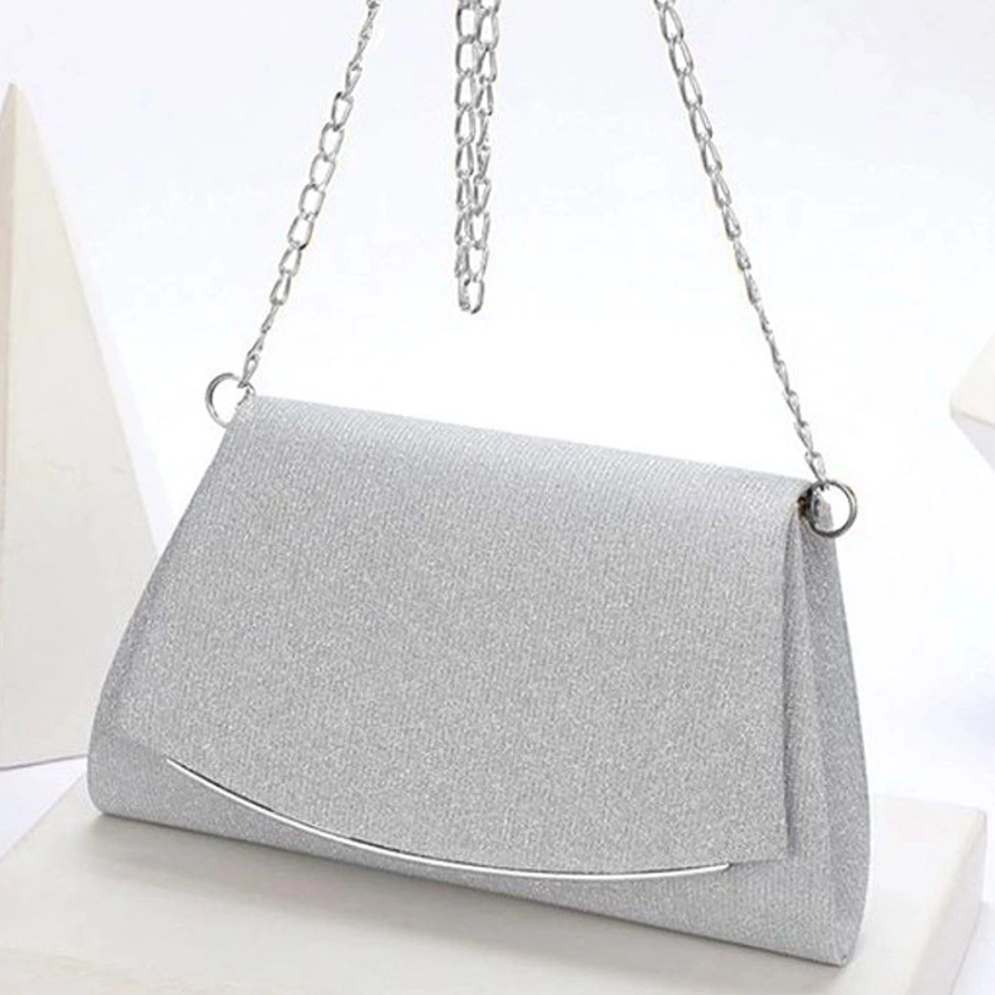 Geanta de umăr de seară pentru doamne cu brocart atractiv este confecționată din țesătură sintetică argintie, decorată cu brocart strălucitor. Materialul este canelat. Pereții laterali ai produsului sunt ușor capitonați. Acest lucru face ca această geantă elegantă să arate extrem de izbitoare.
