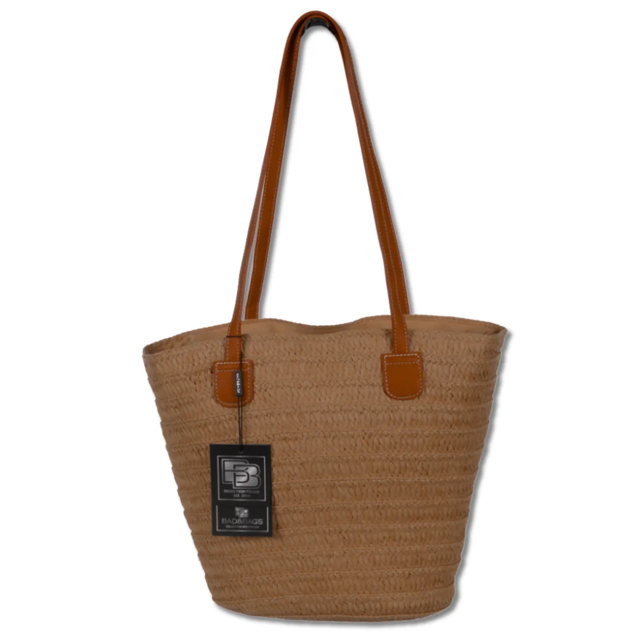 Geantă de umăr din paie pentru plajă de vară BAD&BAGS mare