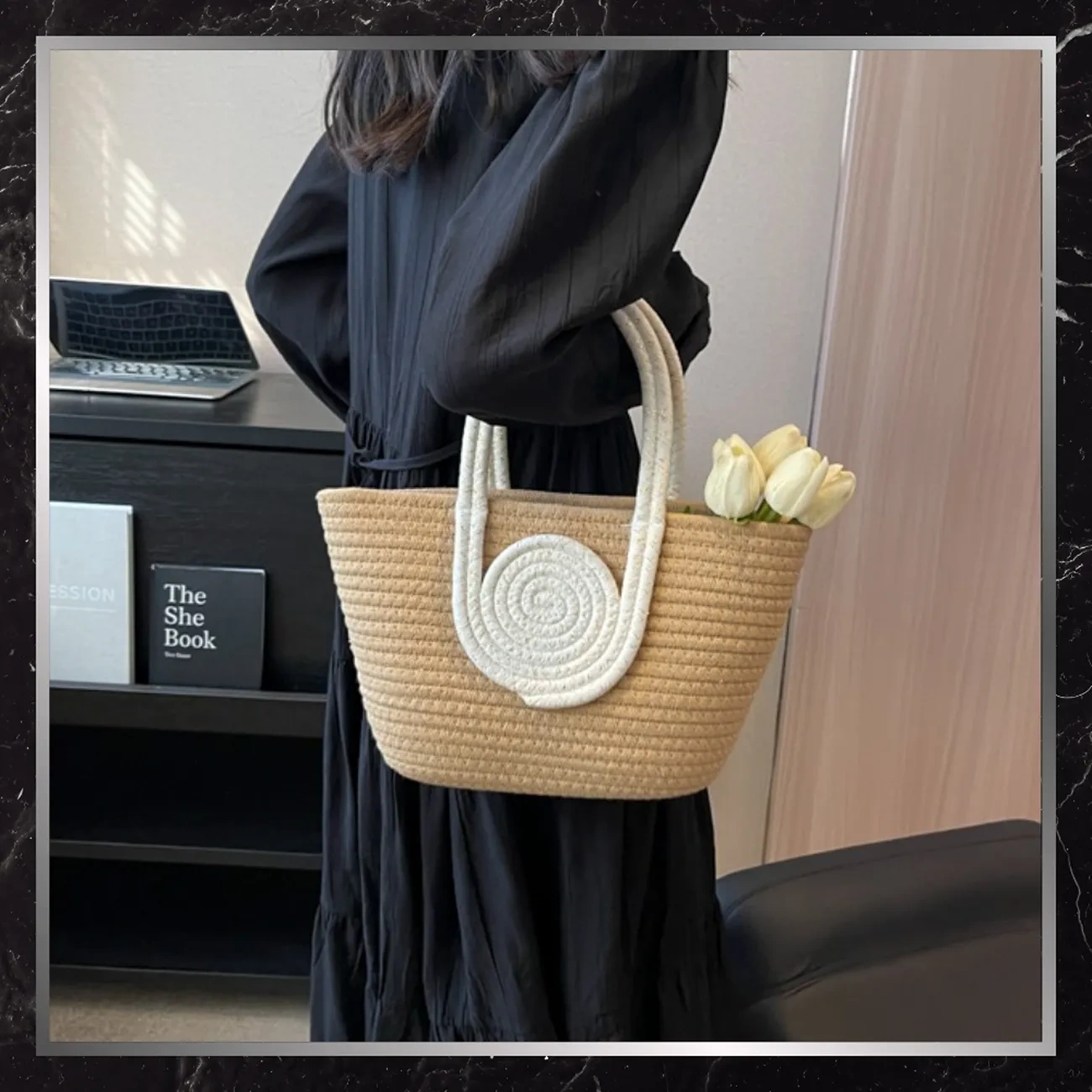 Această geantă elegantă din împletitură de înaltă calitate este alegerea perfectă pentru vară - atât pentru plajă, cât și pentru ieșirile de zi cu zi. Combină funcționalitatea și stilul natural, atrăgând privirile cu designul său clasic, cu mânere și detalii maro.