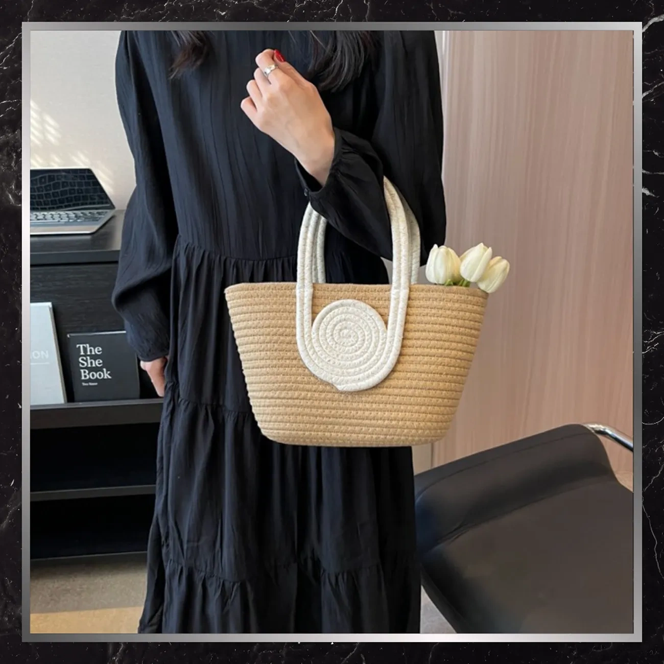 Aceasta este o geantă de vară la modă pe care o poți purta pe umăr sau în mână. Datorită dimensiunilor sale compacte, va fi perfectă pentru vacanțe, la plimbare sau ca un plus subtil la o rochie de vară. Construcția sa ușoară și forma bine gândită garantează confortul utilizării pe tot parcursul zilei.