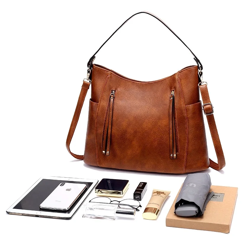 ✅ Geanta poate fi purtată de mâner sau pe umăr cu o curea reglabilă.