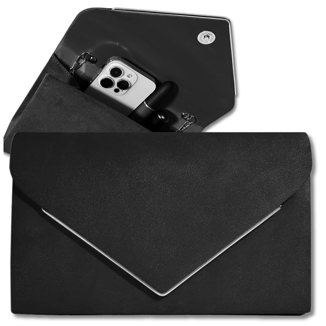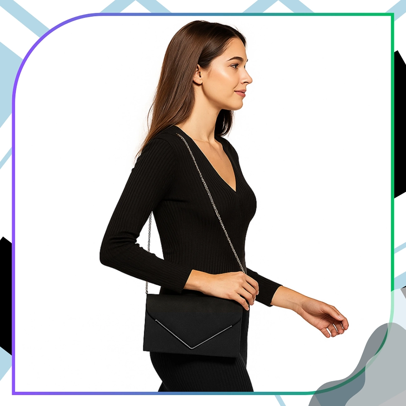 Clasica geantă clutch neagră din piele întoarsă este un element esențial al garderobei fiecărei femei care prețuiește eleganța și stilul atemporal. Perfectă pentru ocazii speciale – nunți, Revelion, petreceri sau cine romantice – dar se potrivește bine și cu ținutele de zi cu zi, adăugând o notă de clasă și eleganță.