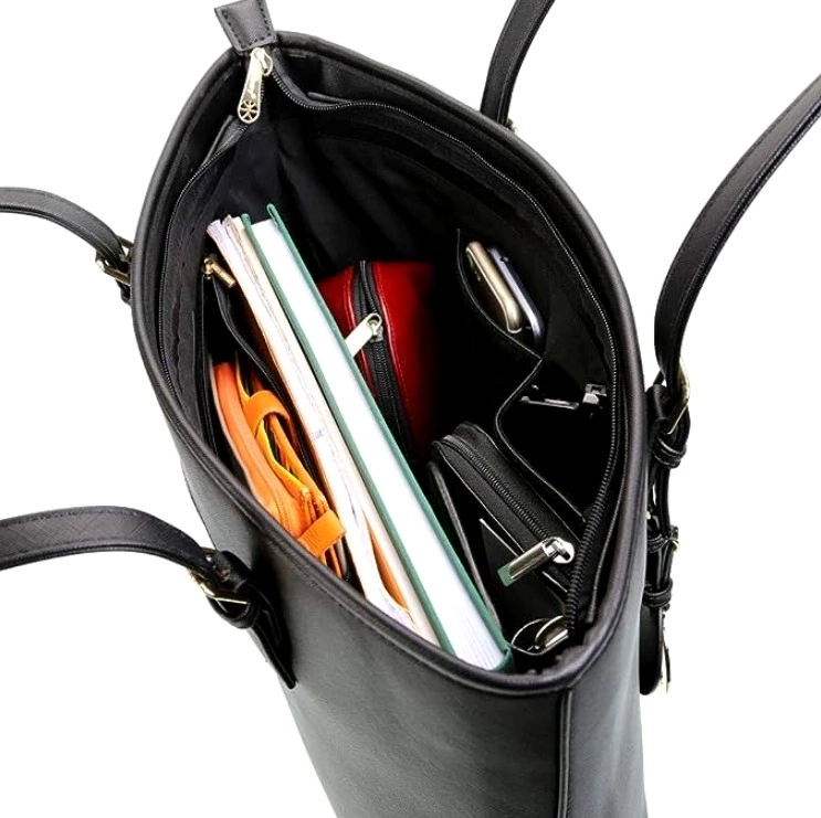Un accesoriu perfect pentru orice ținută, geanta de umăr mare din piele pentru femei, cu etichetă A4 încăpătoare , de culoare neagră, va fi perfectă atât pentru întâlnirile de afaceri, cât și pentru o călătorie casual la cumpărături. Geanta shopper clasică a fost realizată din piele ecologică.