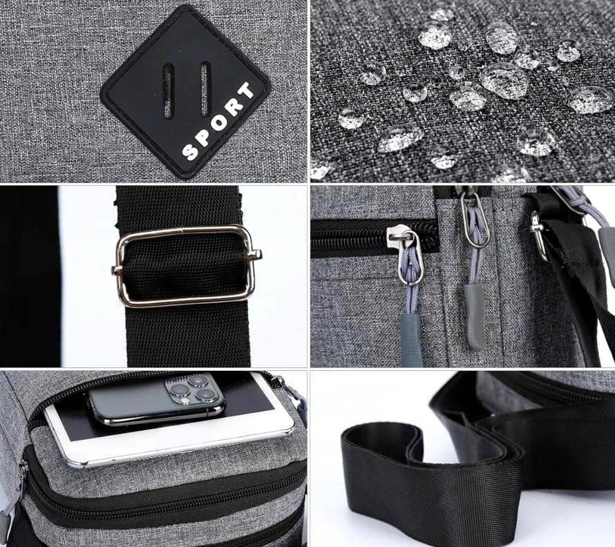 Săculețul este purtat pe umăr cu o curea reglabilă, îl puteți purta în față sau în spate pentru acces rapid la conținut, sau îl puteți glisa pe lateral sau pe spate