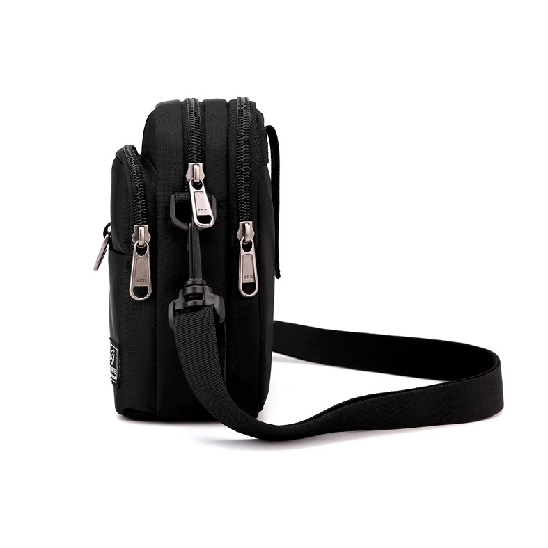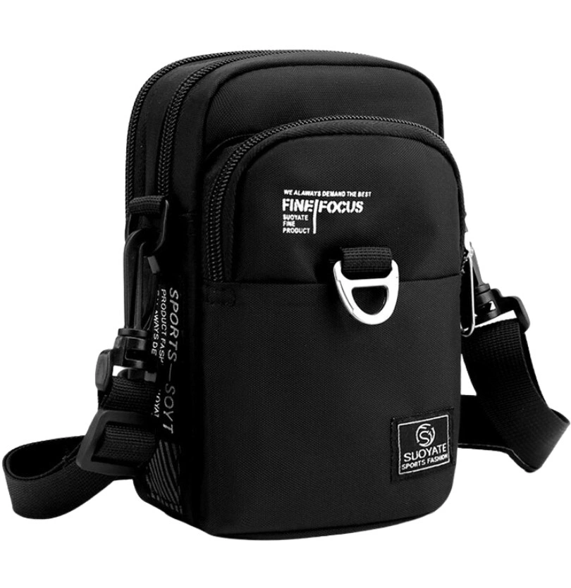 Geanta sport pentru bărbați sacou peste umăr mic impermeabil are trei buzunare de dimensiuni diferite, închise cu fermoare puternice. În față există un compartiment deschis pentru depozitarea obiectelor mici.