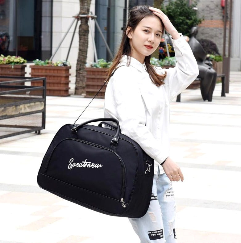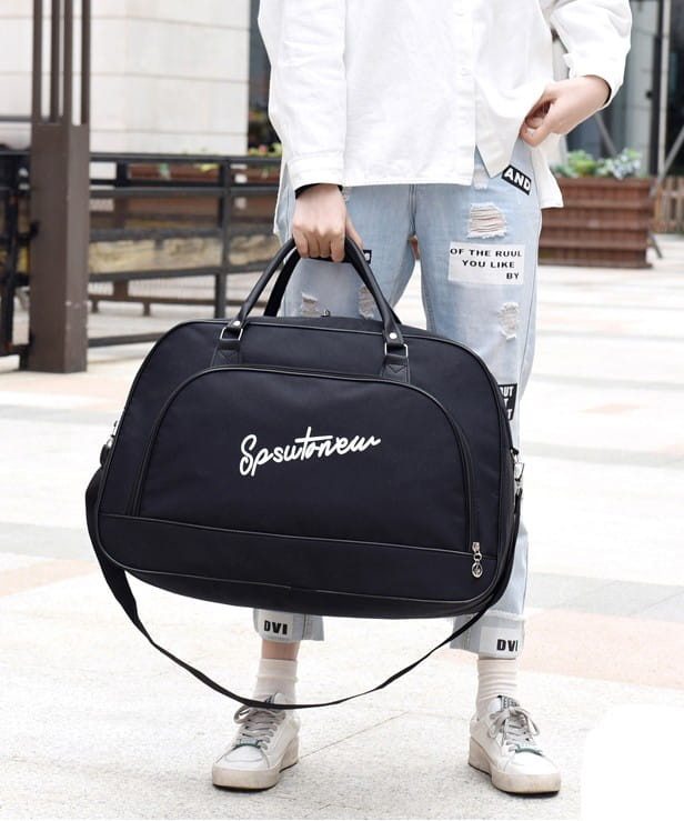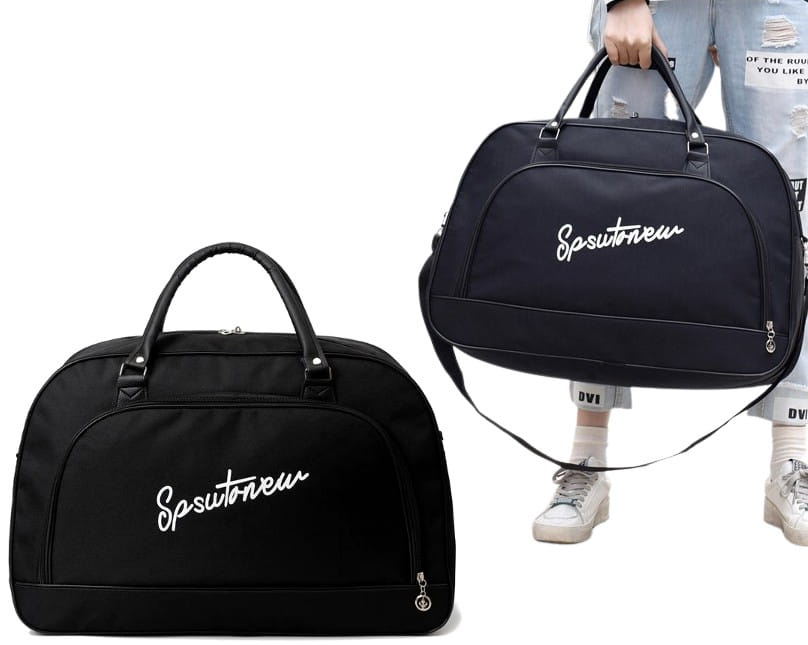 Geantă de gimnastică de călătorie spațioasă neagră - un produs atractiv, preferat de mulți oameni.