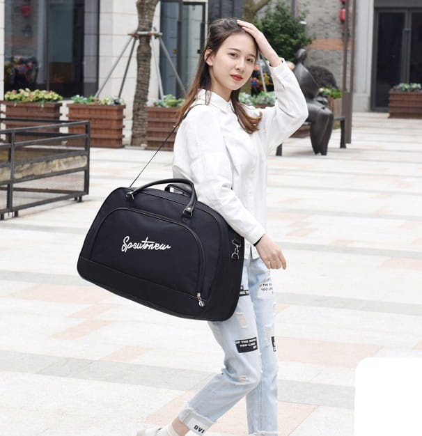 Produsul este universal, motiv pentru care îl folosesc atât bărbații, cât și femeile. Geanta de gimnastică de călătorie încăpătoare este fabricată din nailon negru rezistent la abraziune. Țesătura este impermeabilă, astfel încât dacă plouă sau este inundată accidental, hainele transportate în ea nu se vor uda.