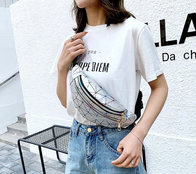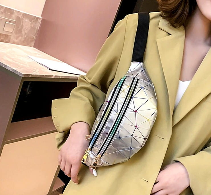 Geanta poate fi purtată pe talie, șold sau spate și ține toate