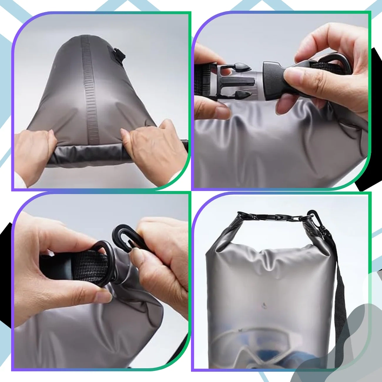 Această geantă uscată nu este doar practică, ci și ușor de curățat - doar șterge-l cu apă sau clătește-o cu o cârpă umedă. Când este pliată, ocupă puțin spațiu, ceea ce o face o opțiune excelentă ca geantă de rezervă pentru orice călătorie.