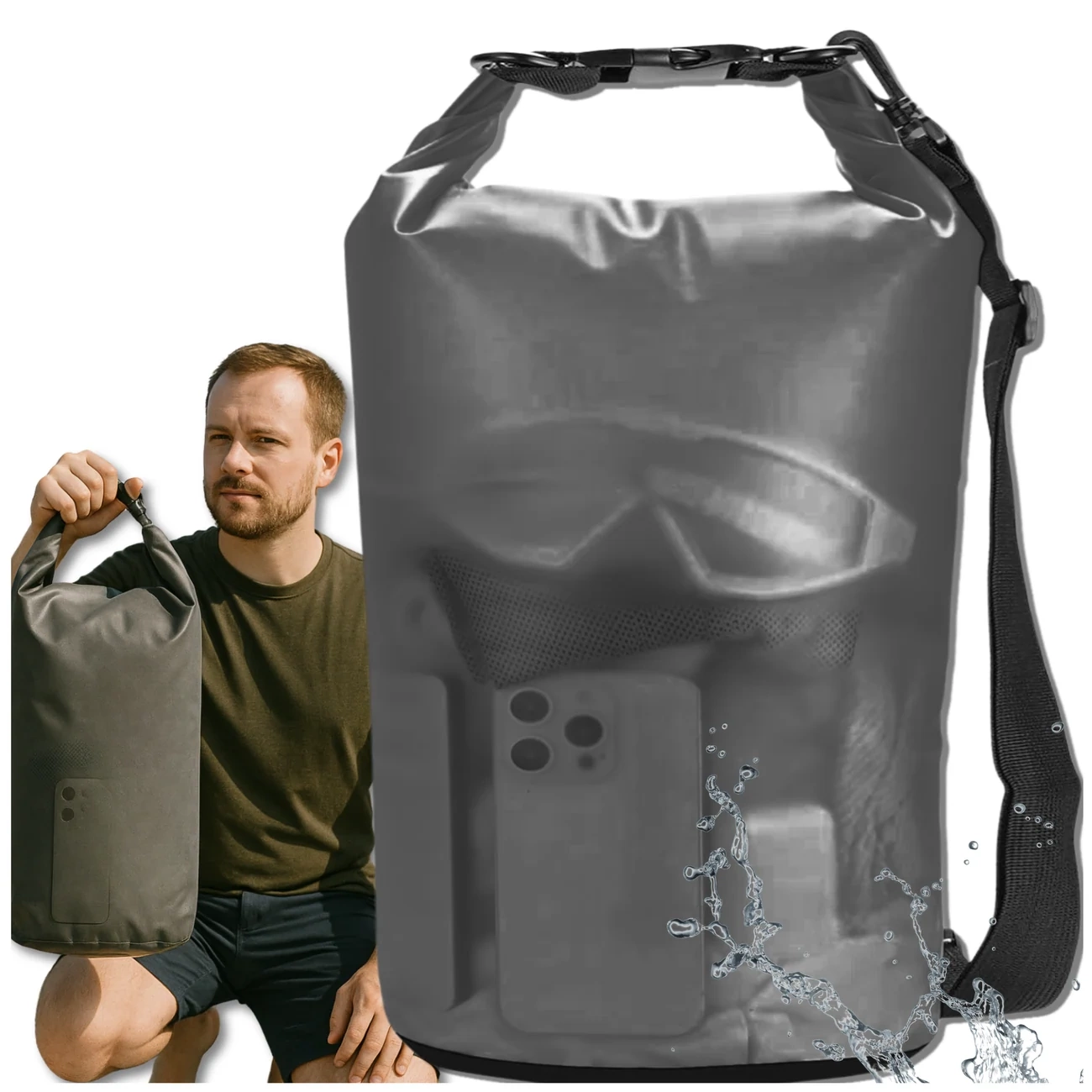 Datorită dimensiunilor sale compacte (25 × 48 cm) și capacității de 20 de litri, puteți încăpea toate lucrurile necesare în el - haine, un prosop, telefon, cameră, documente sau un power bank. Geanta este grozavă și ca geantă impermeabilă pentru caiac sau geantă pentru bicicletă - o poți purta pe umăr datorită curelei reglabile, care garantează confort și libertate de mișcare.