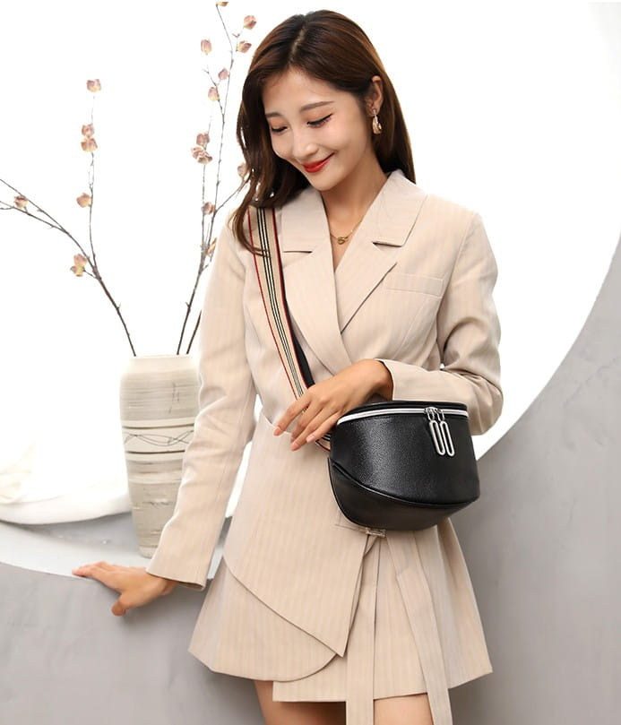 Geantă mică tip săculeț , confecționată din piele ecologică plăcută la atingere, moale, subțire.