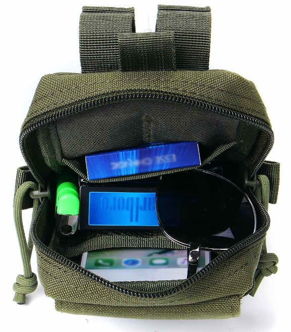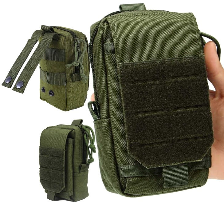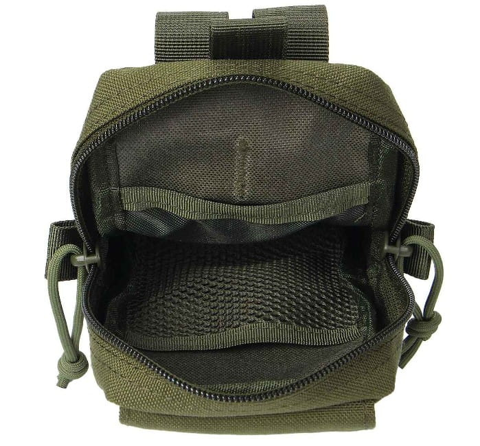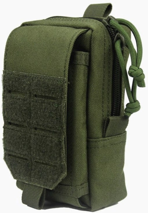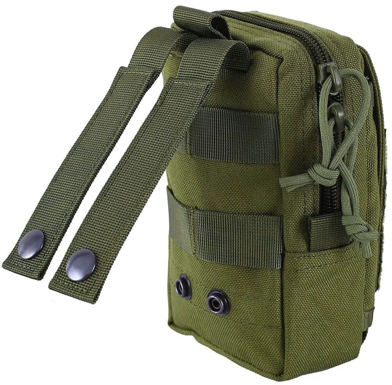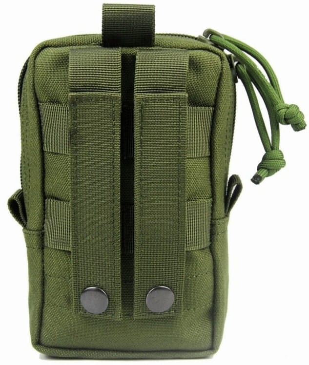 Fabricată din material impermeabil certificat 1000 D, punga verde militară poate face parte dintr-o ținută de supraviețuire sau de antrenament militar. Este un produs foarte încăpător. Săculețul militar verde poate ține cu ușurință un telefon, ochelari sau documente de identificare.