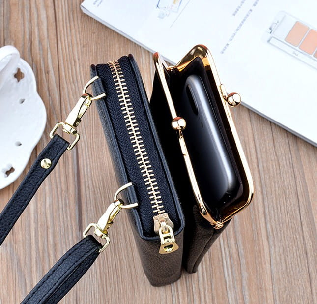Geanta neagra pentru telefon mini portofel