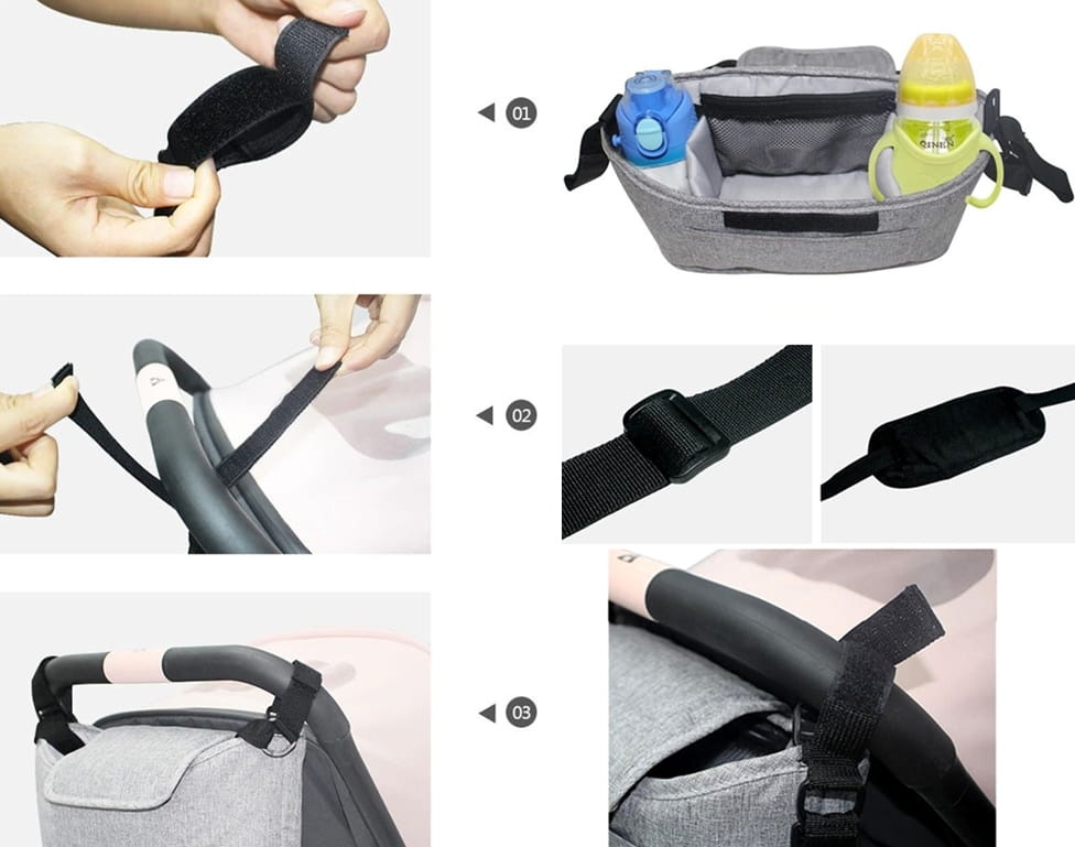 Organizator sau geantă versatilă și practică pentru cărucior, ideală atunci când vă plimbați cu bebelușul, ușoară și împachetabilă