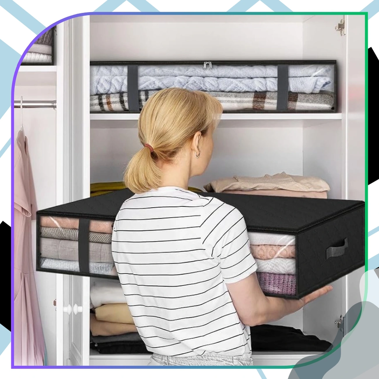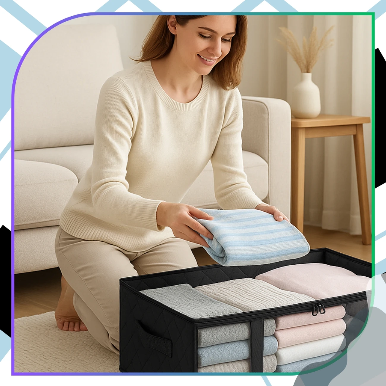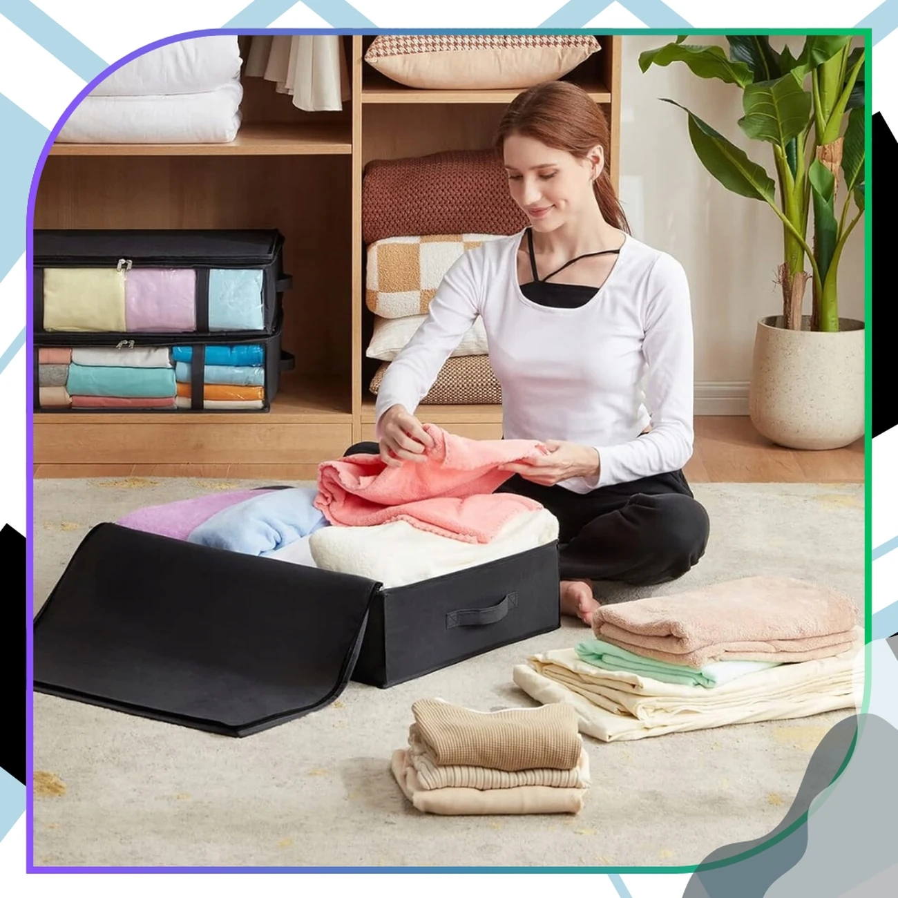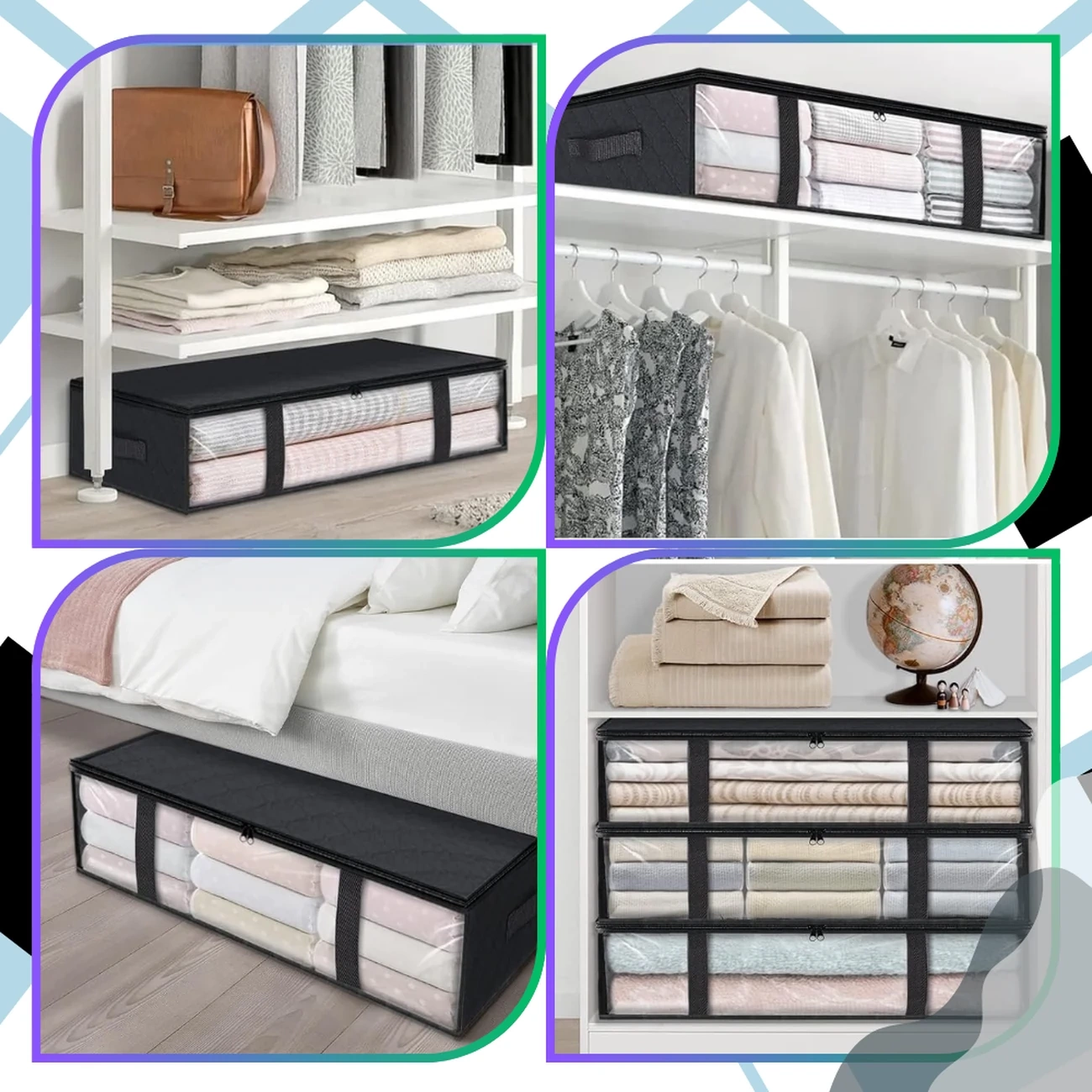 Set de 2 organizatoare pentru lenjerie de pat, pături și haine - o soluție practică pentru fiecare garderobă!