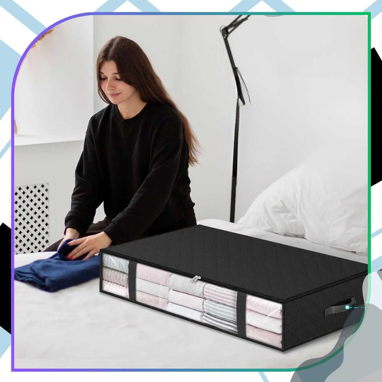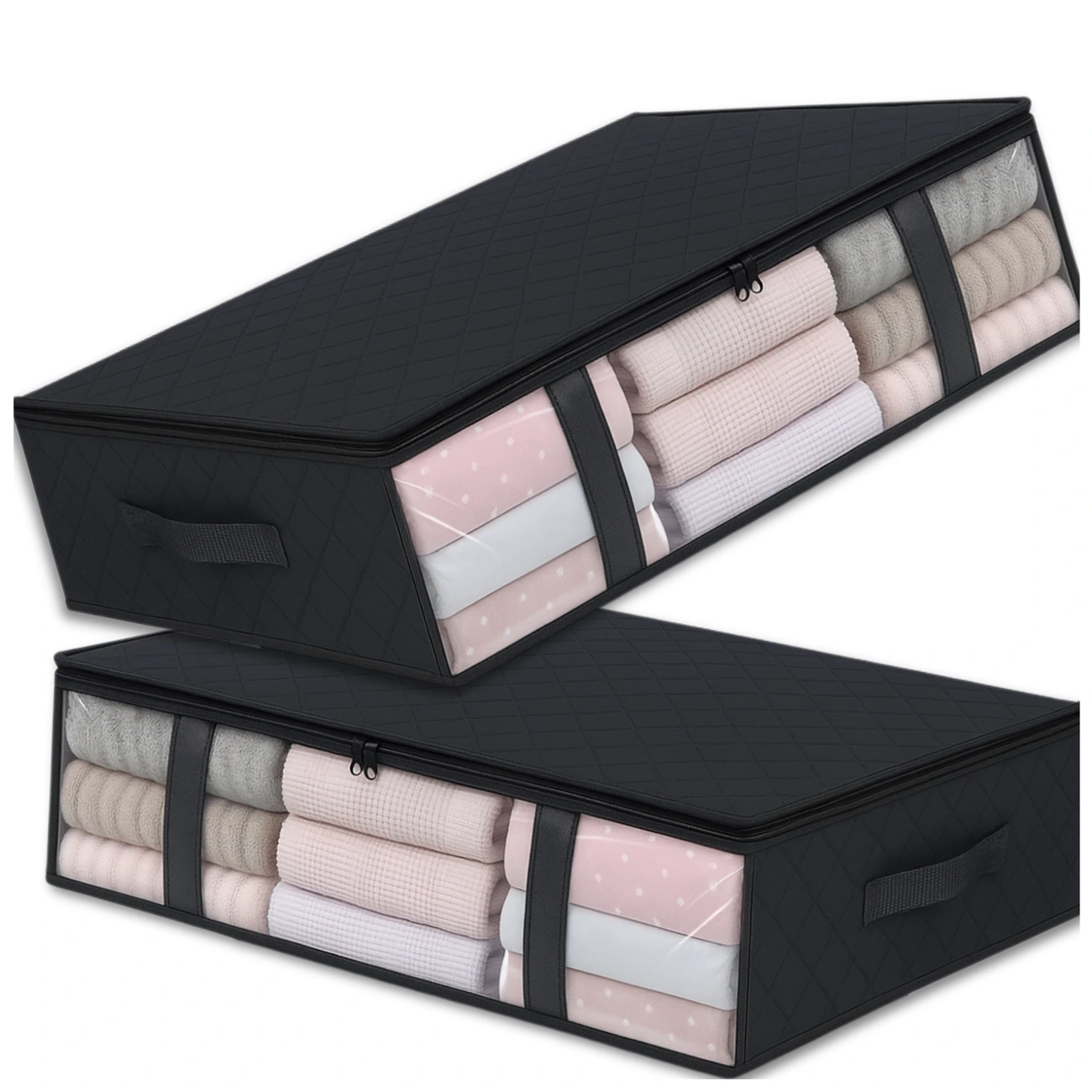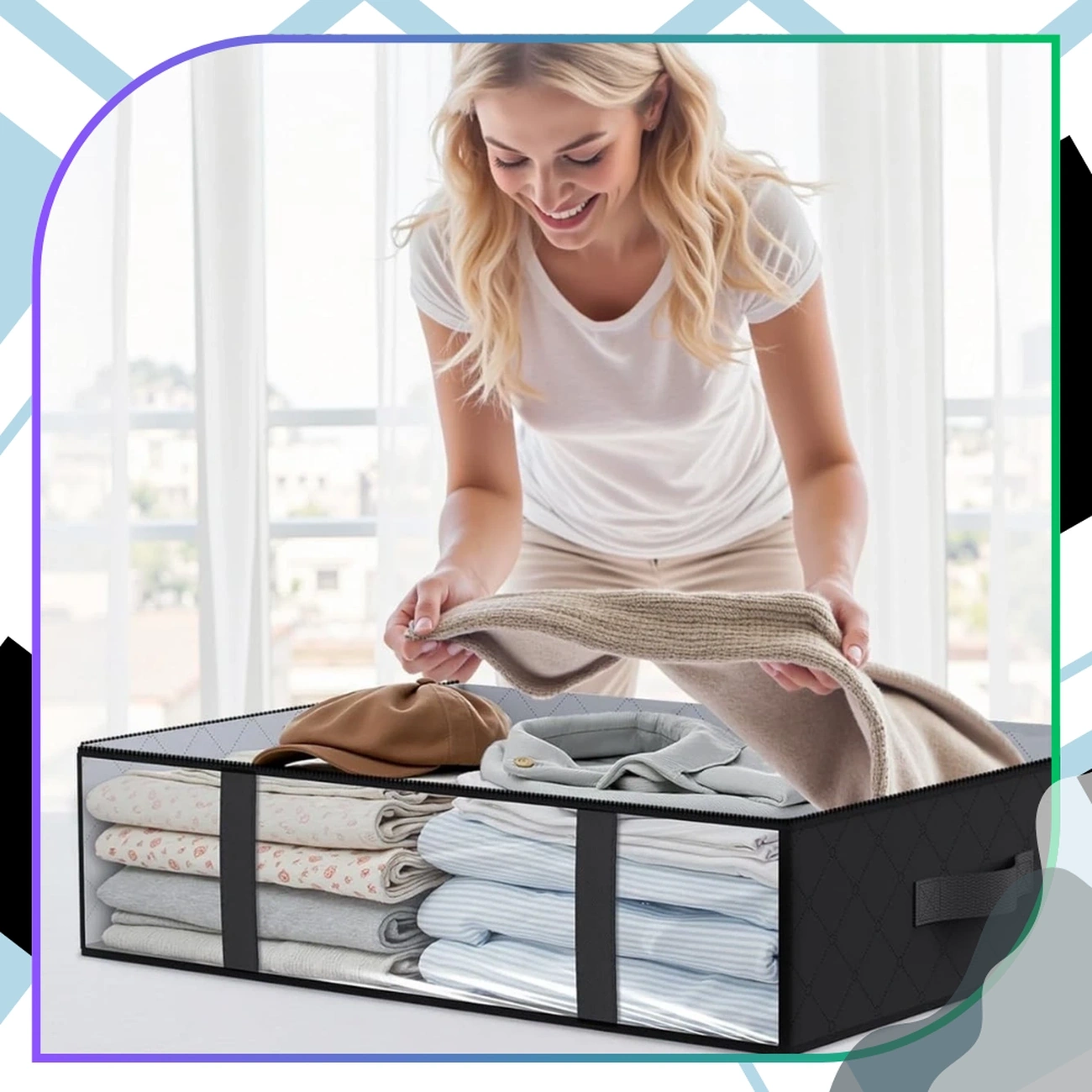 Cu dimensiunile de 60 × 45 × 15 cm, **organizatorul de haine** va găzdui lenjerie de pat, pături, perne, prosoape și chiar haine de sezon. Geanta se închide cu un **fermoar** pentru a proteja eficient conținutul de praf și umiditate. Partea frontală are o fereastră transparentă care vă permite să vedeți instantaneu ce este înăuntru - nu mai este nevoie să despachetați și să căutați!