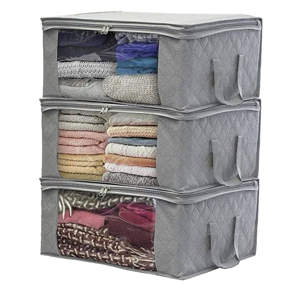 Sacul pentru lenjerie organizator de garderobă funcțional și foarte încăpător este un produs care poate găzdui cu ușurință lenjeria de pat și diverse tipuri de îmbrăcăminte. Capacul protejează articolele din interior de molii și diverse murdării.