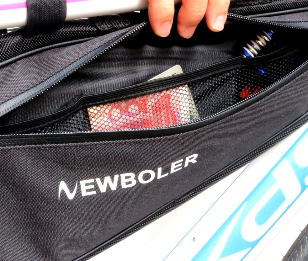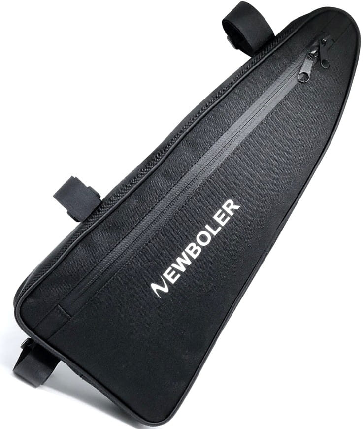 Perfect confecționată și împodobită cu o bordură robustă neagră, punga frontală pentru geanta de bicicletă este disponibilă în magazinul nostru online în tradiționala culoare neagră. Forma sa seamănă cu un triunghi. Este decorată pe partea din față cu o inscripție mare, albă "NEWBOLER".