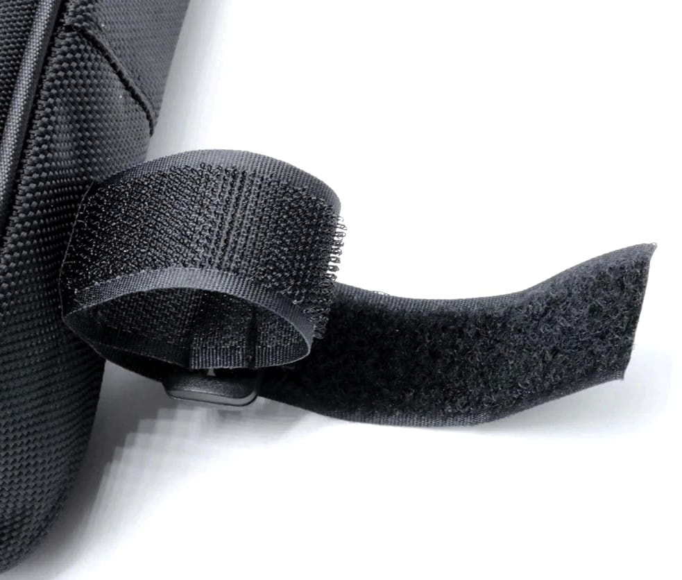 În interior există trei buzunare mici din plasă pentru obiecte mici. Produsul se atașează la bicicletă cu trei curele puternice Velcro de culoare neagră. Datorită acestora, acesta poate fi ajustat la grosimea oricărui cadru de bicicletă.
