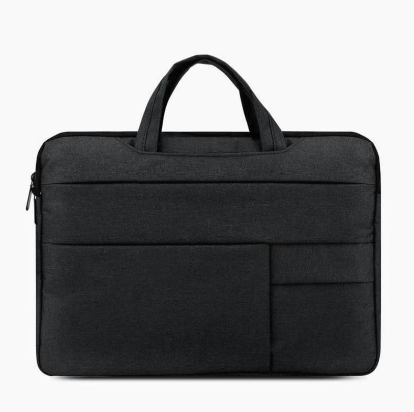 Geanta robustă neagră pentru laptop tip servietă are un compartiment mare, care este prevăzut cu fermoar. Dispune de două fermoare rezistente, care pot fi lăsate în mijloc sau glisate pe una dintre părți.