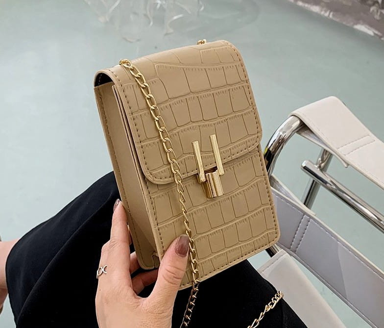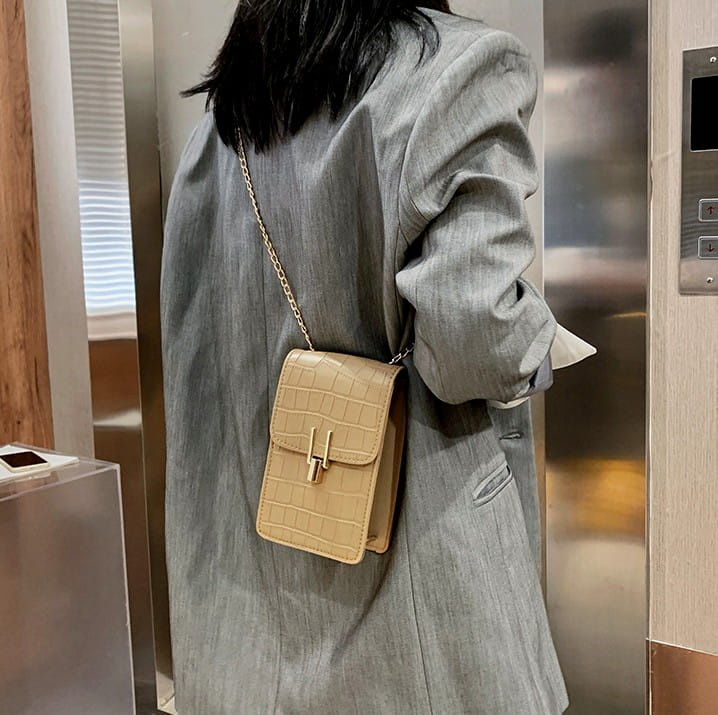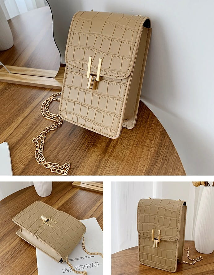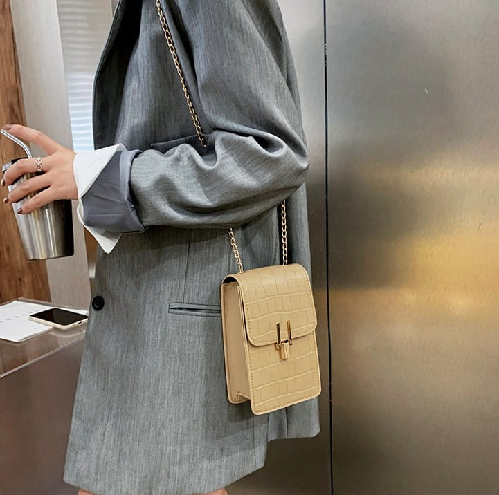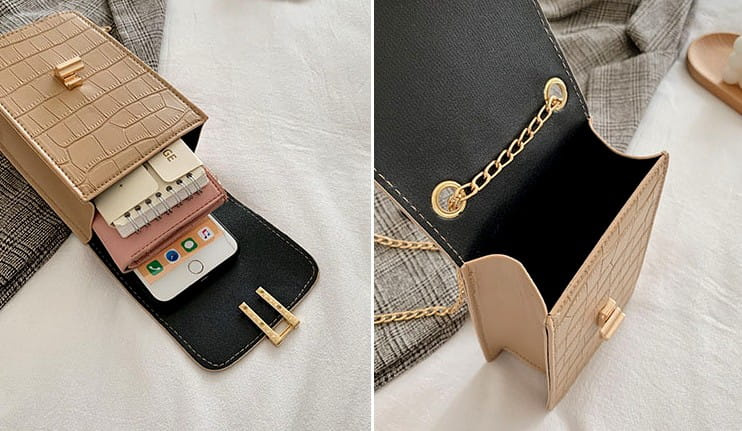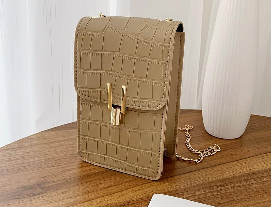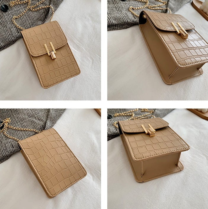 Atragând privirile cu manopera sa excelentă , această pungă din piele pentru telefon mobil este un accesoriu de marcă și elegant pentru multe look-uri, purtate de persoane de toate vârstele. Această geantă de mână pentru telefonul mobil are feronerie metalică și o curea lungă, reglabilă.