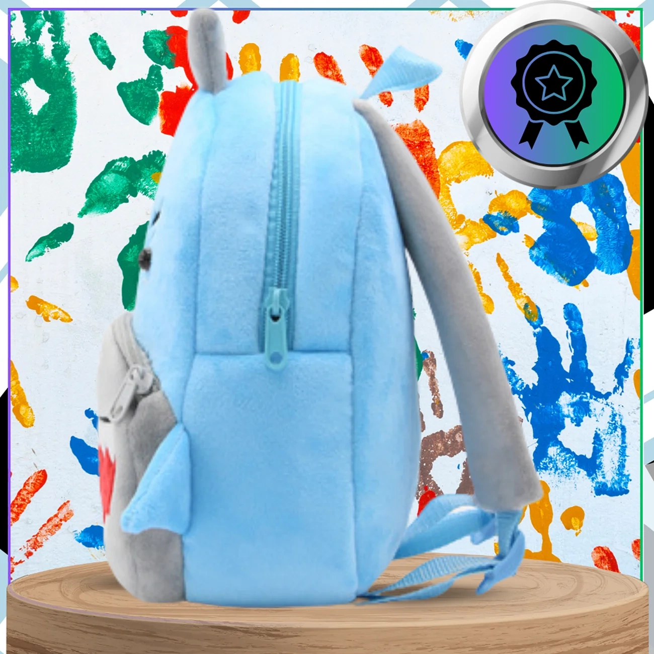 Ghiozdan de pluș pentru copii, pentru preșcolari, cu fermoar, model SHARK