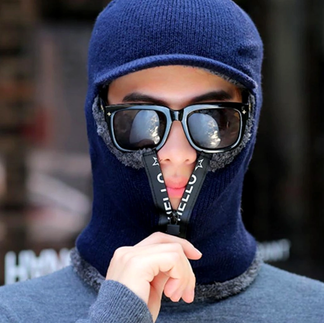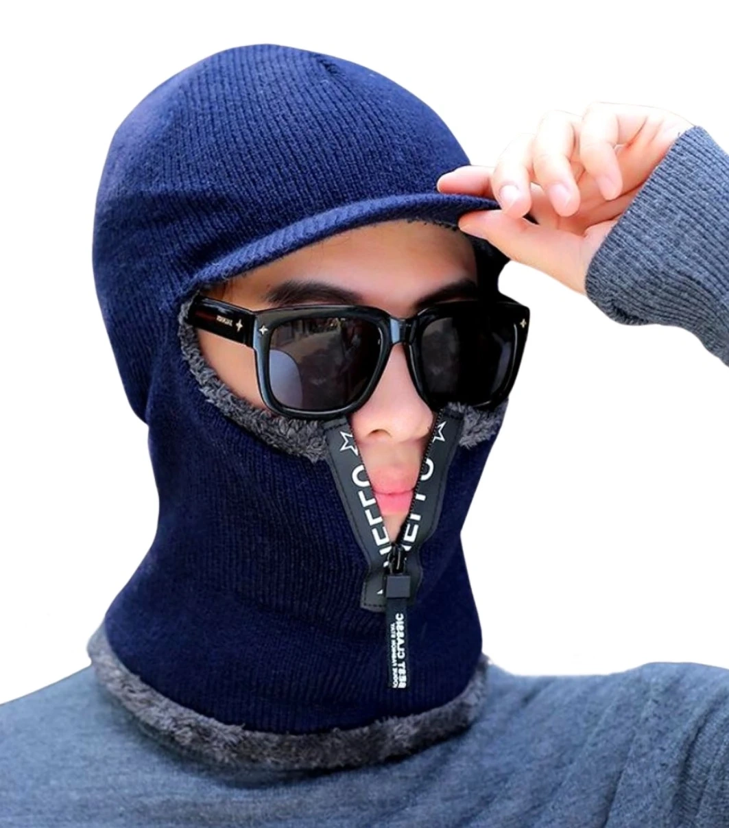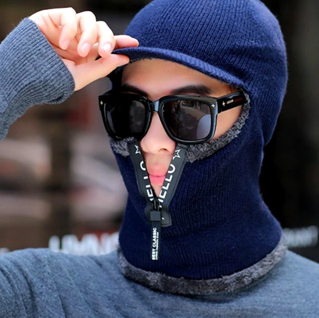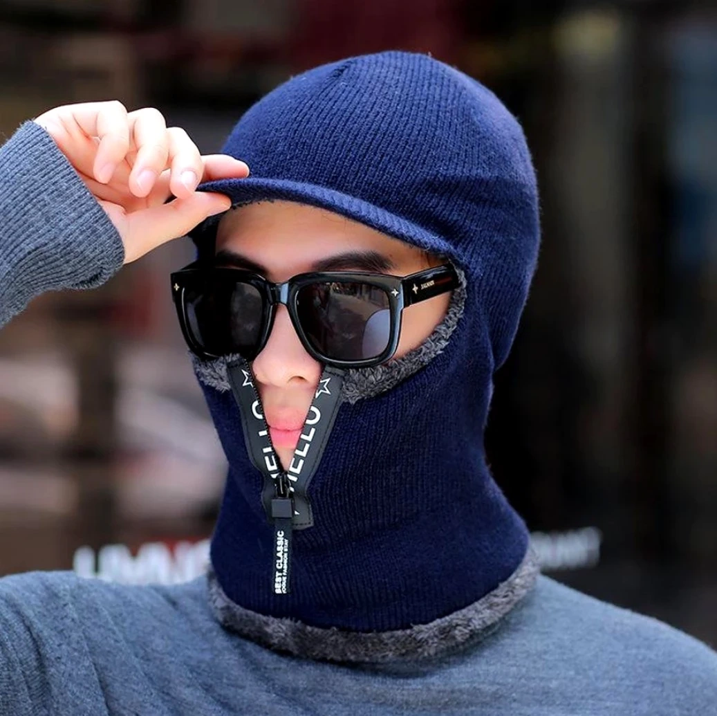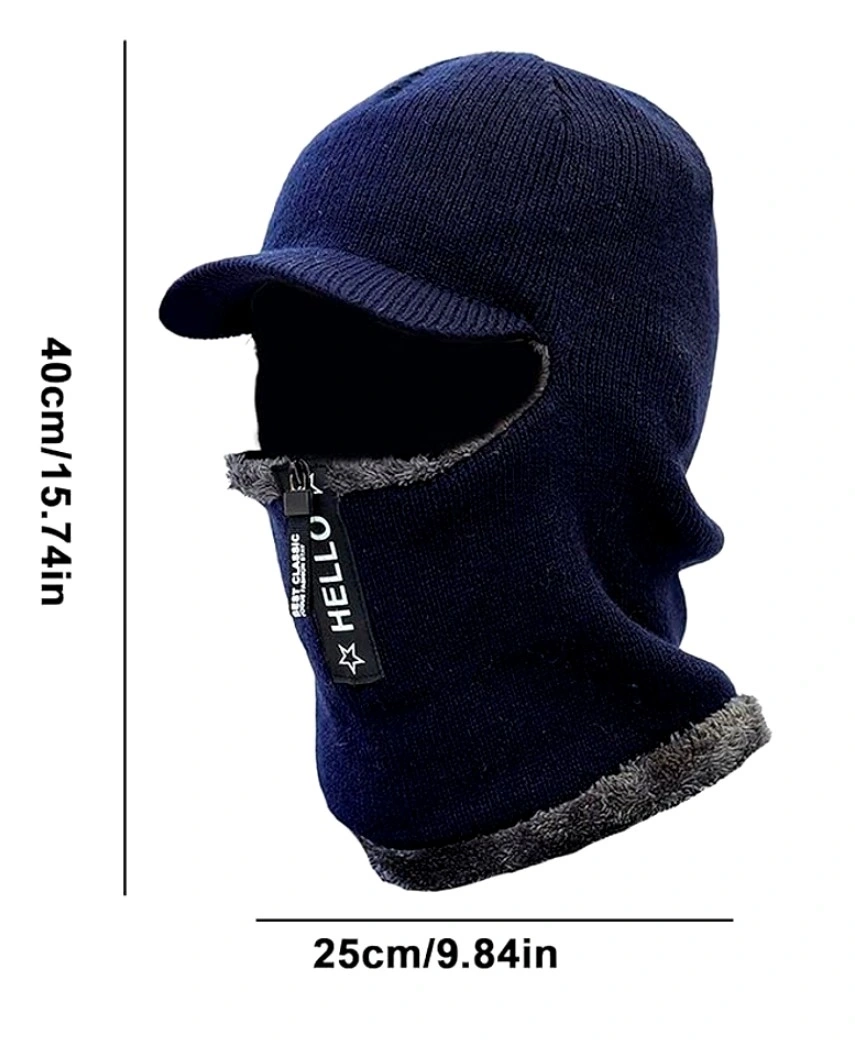 Capota de iarnă izolată pentru bărbați în aer liber este fixată cu un fermoar sub ochi. Odată ce este închisă, fața, capul și gâtul pot fi complet protejate de frig.
