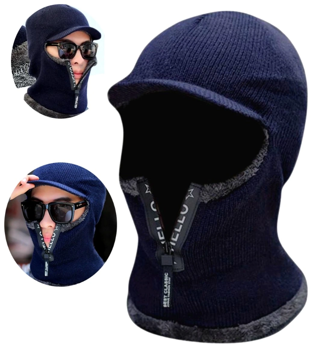 Glugă izolată de iarnă, căciulă de schi pentru exterior pentru bărbați, fermoar