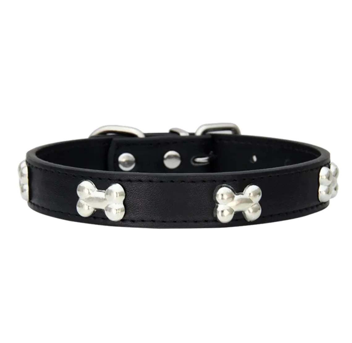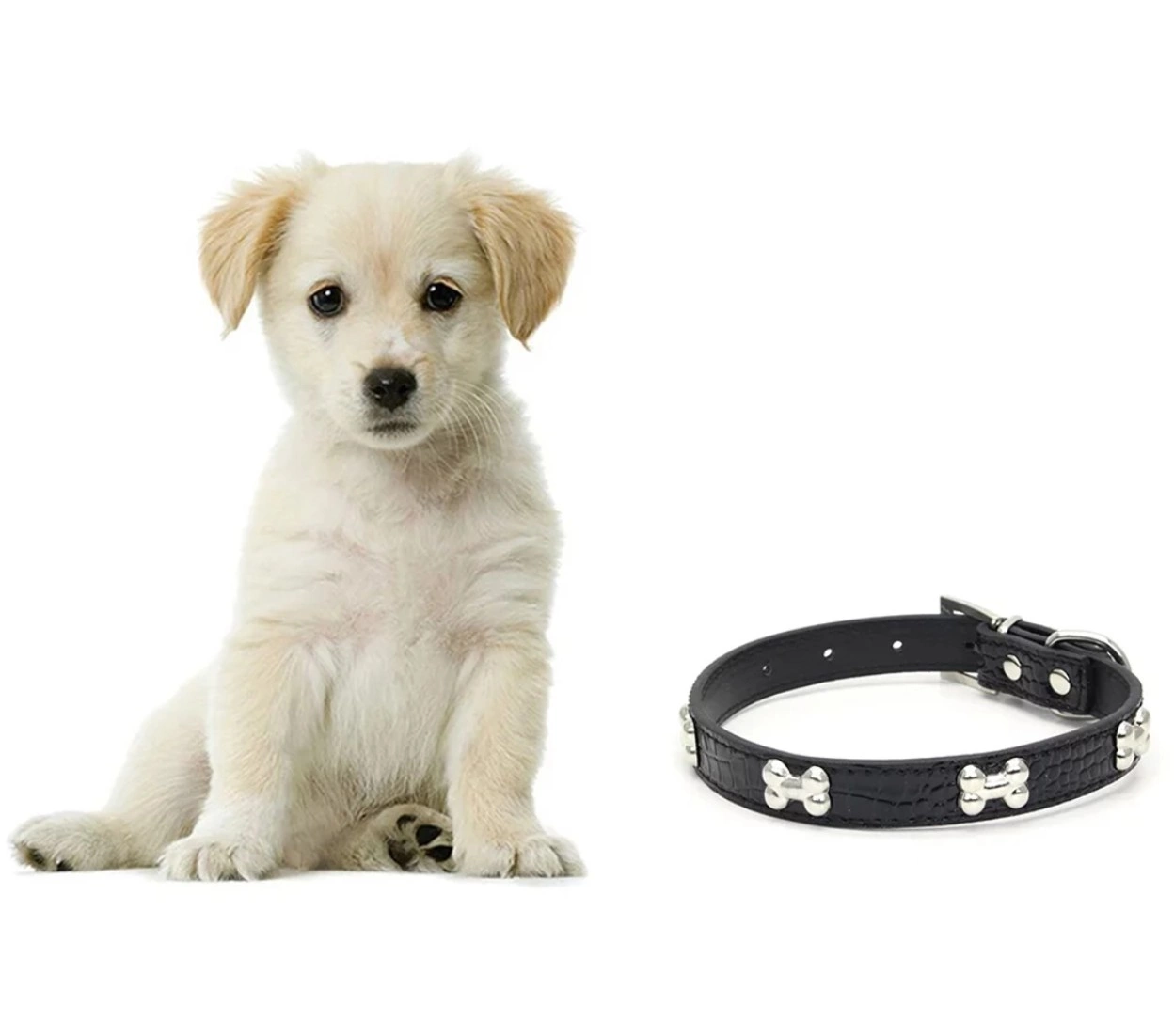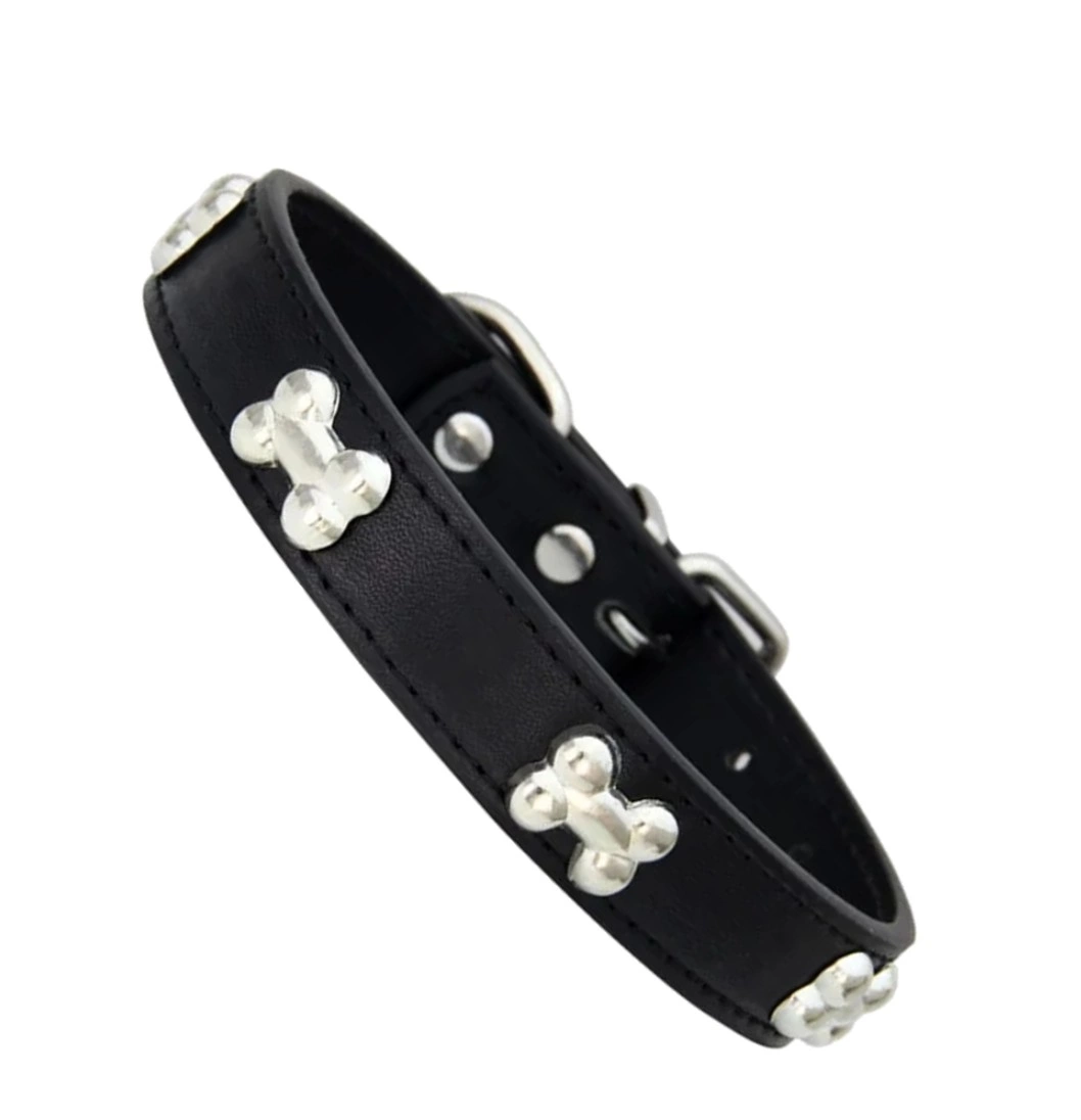 Guler de câine din piele drăguț cu glezne negru reglabil