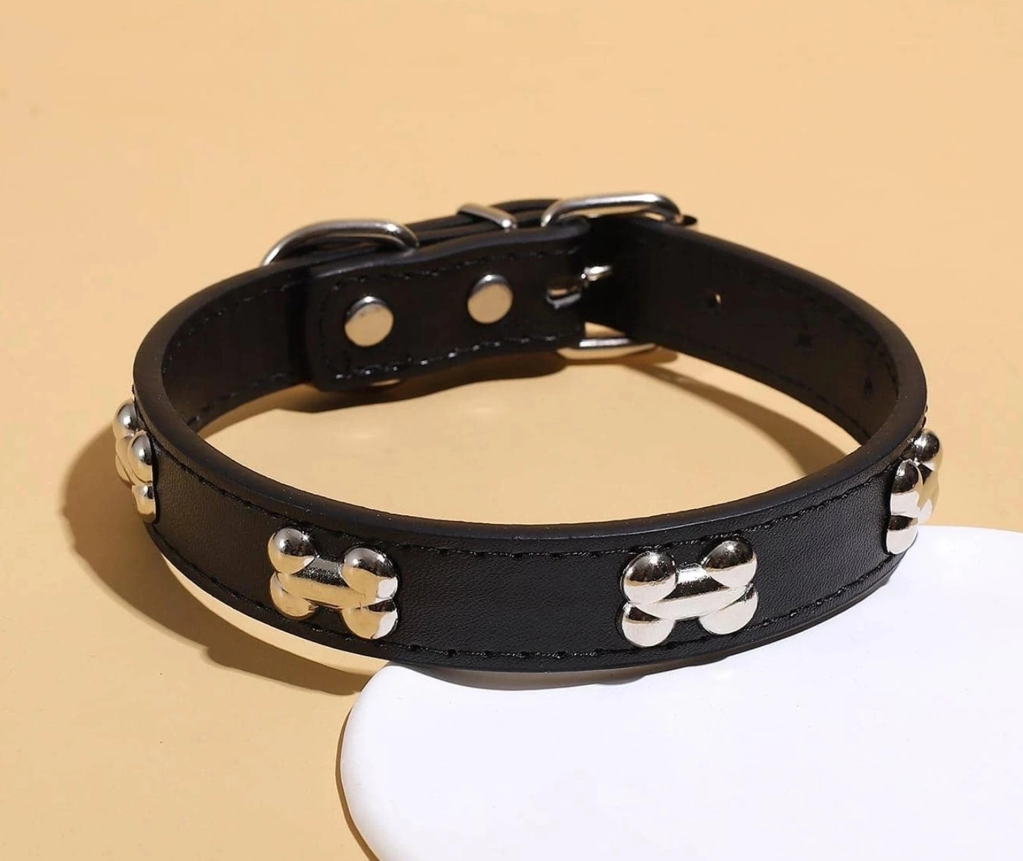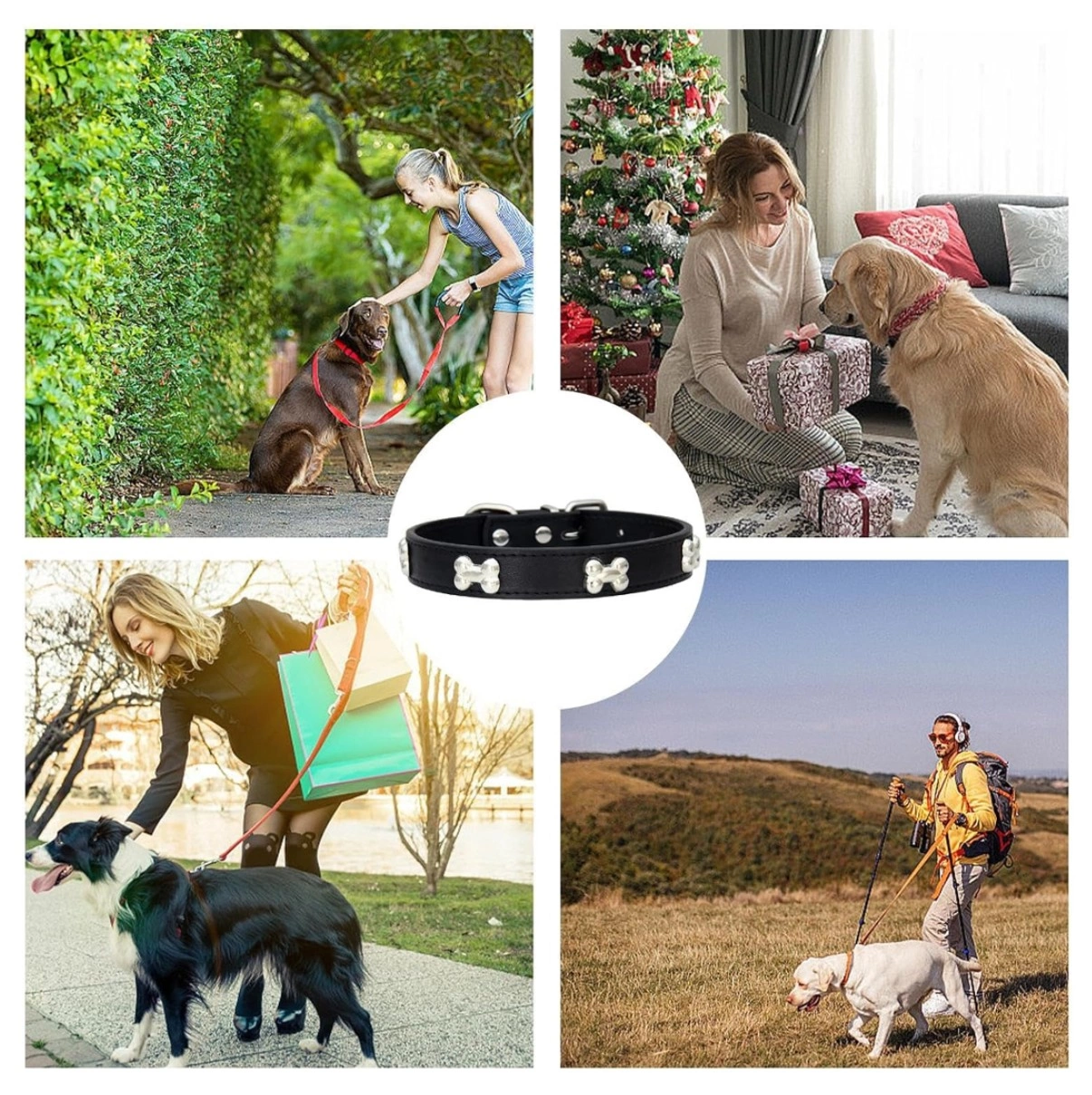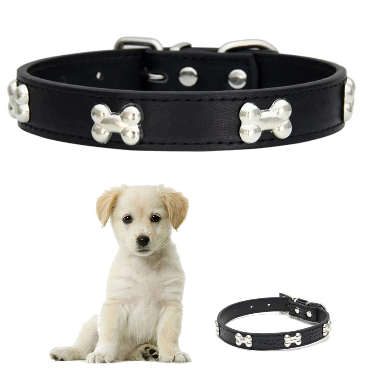 Guler de câine din piele drăguț cu glezne negru reglabil