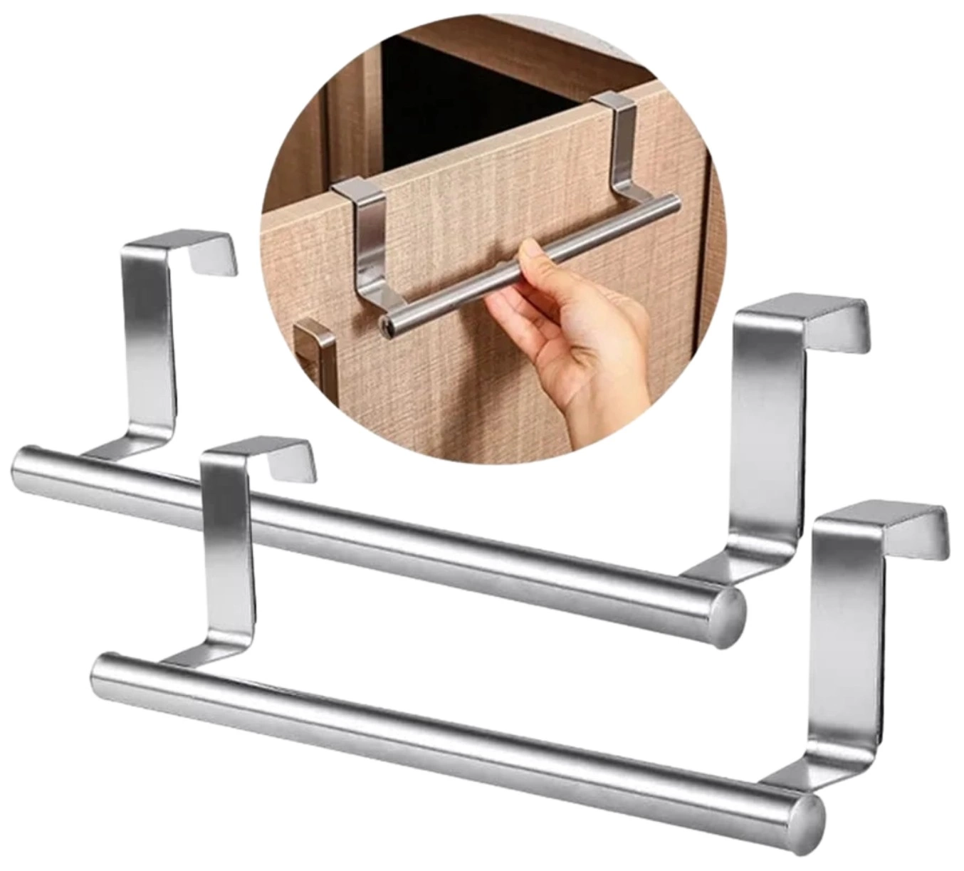 Hangers 2pc pentru bucătărie dulap baie ușă prosop feroviar argint