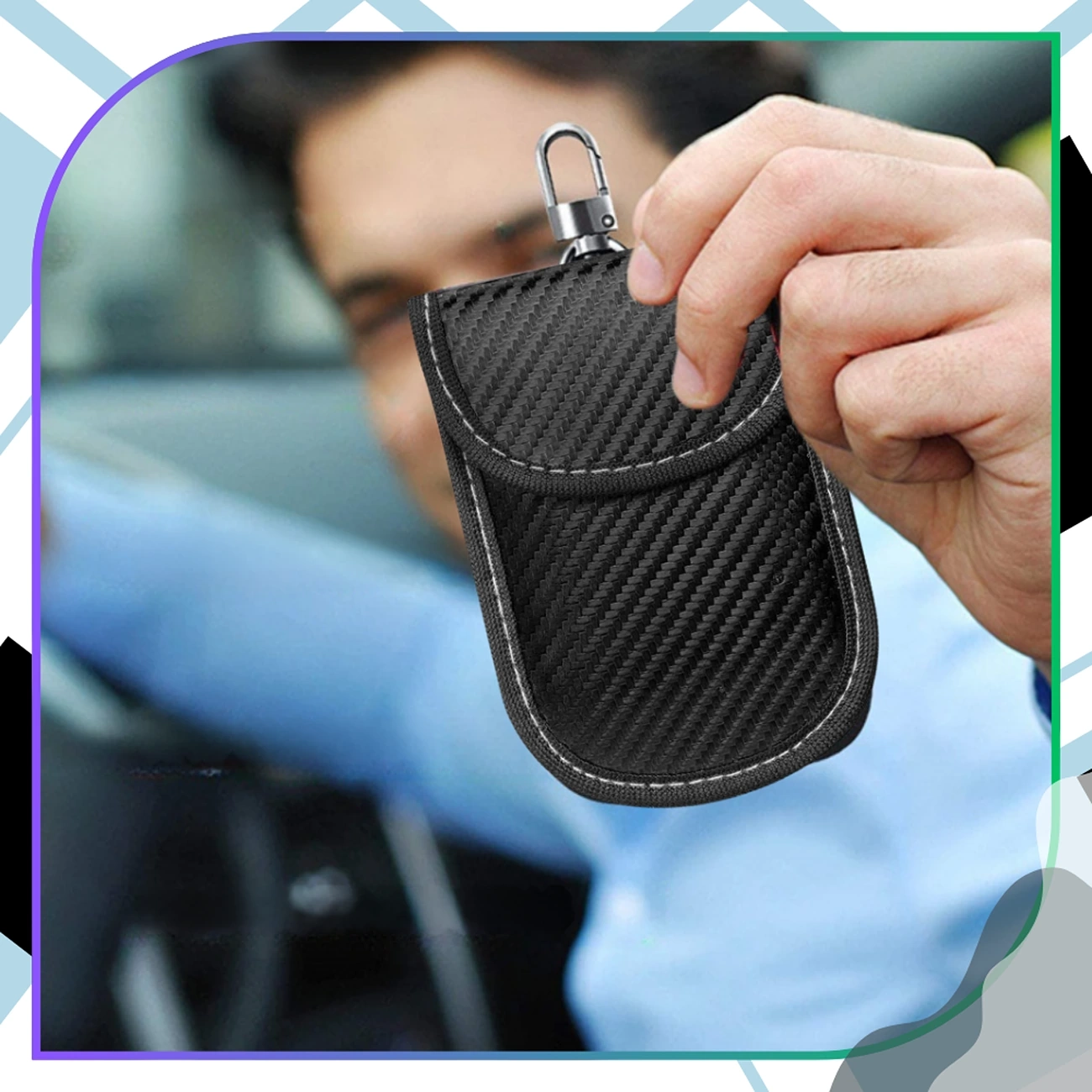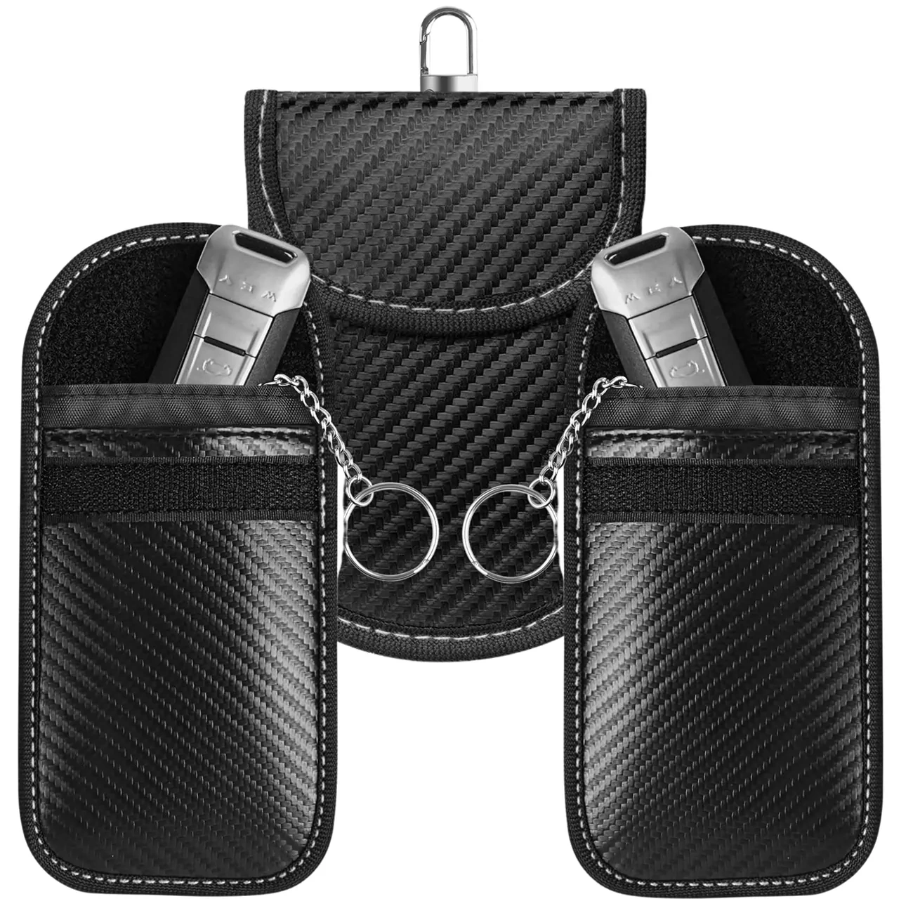 Husa este realizată din fibră de carbon de înaltă calitate, ceea ce îi conferă un aspect modern și durabilitate. Culoarea elegantă neagră cu un finisaj contrastant de fir alb face ca accesoriul să arate elegant și se potrivește cu orice set de chei. Țesătura de ecranare internă RFID este responsabilă pentru blocarea eficientă a semnalului.